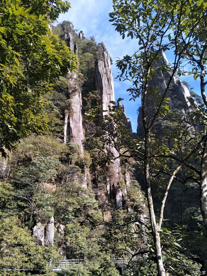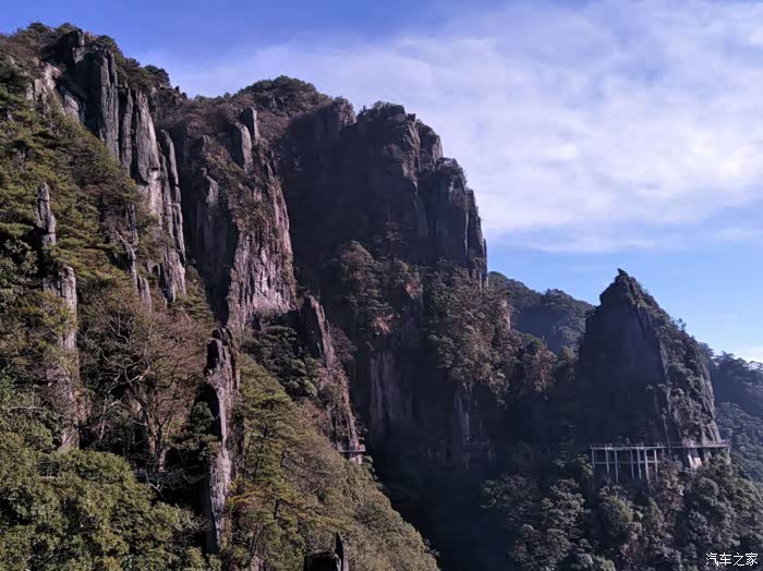 景区有两条观光线,一条是观光车,一条是山间修建的凌云栈道,我们选择了走栈道,依山而建,蔚为状观。