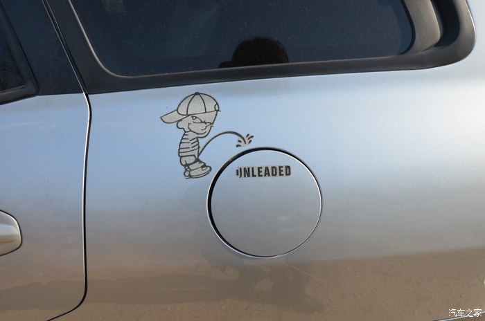 车贴是02年我妈妈贴的,提醒加油员工只能使用无铅的汽油,十几年的车贴,质量还是可以的