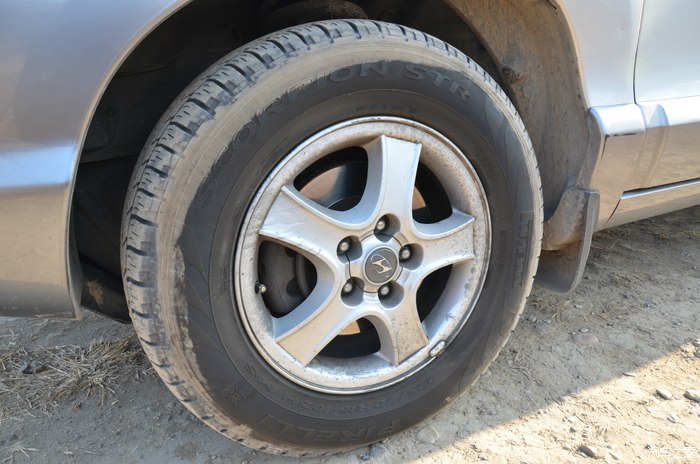 原装的16寸轮毂!轮胎是11年在汽配城换的倍耐力,原车的是韩泰,换后明显感觉噪音下降转向轻了!