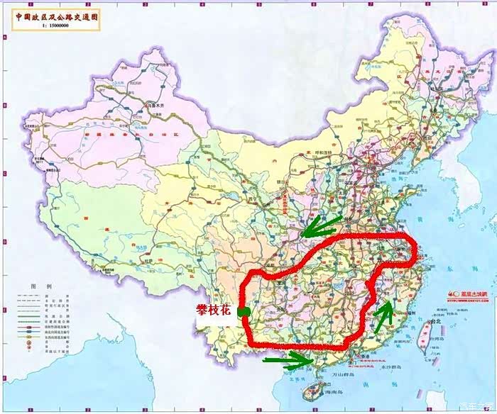 路线:攀枝花—永仁—昆明—石林—弥勒—开远—平远—砚山—富宁罗村口—百色—右江民族博物馆—百色起义纪念碑—红七军军部旧址—田东县—平果县—上林县—来宾市—柳州市—柳侯公园—柳州市—鹿寨县—永福县—李宗仁故居—临桂县—龙脊梯田—龙胜县—灵川县—兴安县—全州县—永州市零陵区—阳明山国家森林公园— 浯溪碑林—潇湘公园—柳宗元文化旅游区—石鼓书院—株洲市茶陵县—炎陵县—炎帝陵—红军标语博物馆—井冈山风景名胜区—井冈山市—文天祥纪念馆—樟树市—南昌市—八大山人梅湖景区—余干县—景德镇市—古窑民俗博览区—东至县—池州市—青阳县—九华山风景区—青阳县博物馆—芜湖市—马鞍山市—江宁区—瘦西湖风景区—扬州市—扬州市汽车修理厂—南京—南京夫子庙—南京总统府—肥东县—安徽省博物馆—六安市—商城县—光山县—信阳市—鸡公山风景区—茗阳阁—泌阳县—南阳市—襄州区—古隆中景区—襄阳市—襄阳古城—襄阳博物馆—谷城县—武当山风景区—武当山镇—十堰市—房县—房县观音洞风景区—神农架风景区—木鱼镇—巫山县—奉节县—云阳张飞庙—云阳县—开县—刘伯承故居—梁平县—垫江县—邻水县—广安市—遂宁市—大英县—成都—郫都区—雅安—荥经—汉源—石棉—冕宁—泸沽—攀枝花