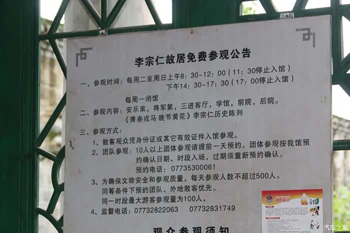 今天9点从永福县出发,大约10点到达李宗仁故居,开始游览,门票:凭身份证免费领取。李宗仁故居坐落在距桂林市约30公里的临桂县两江镇浪头村,建于清末民初,占地5?060平方米,为木结构的二层楼房,由安乐第、将军第、学馆、三进客厅、炮楼等组成,分布有7个院落、13个天井,共有大小厅房113间,是具有庄园气派的桂北民居建筑。故居为李宗仁母亲刘太夫人等家人所长居,李宗仁在此举行婚礼,并接待蒋介石等大批国民党要人、桂系将领。游览结束,然后到广西龙胜县住下。住房信息:晨阳酒店 标间:100元 电话0733-7582888