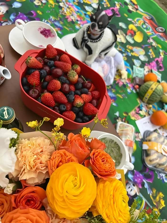 我和小贝贝漫步在花田小道上,感受春风拂面,空气中都是花香的味道,欣赏着无边无际的油菜花海。小贝贝在花丛中嬉戏,不时停下来闻闻花香,让我忍不住按下快门,记录下这美好的瞬间。我们找到了一个合适的露营地。准备了很多好吃的食物。玩够的之后就带着小贝贝回到车上了,皓极的大空间可以让我们在车上很好的休息。