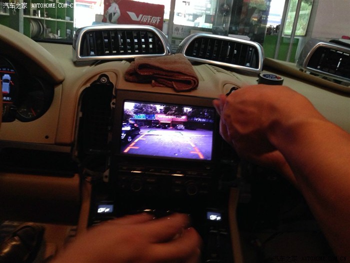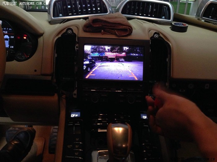 我家老爷终于换车了,这次换了个高大上,传说中的卡宴。搞了个低配的,不过已经够用了,老爷子其他都没什么要求,就是要搞个倒车影像上去,不是开的不踏实啊,之前的车上这个设备也是没少过的,也许是习惯了吧,老人家看不见后面,他开的不踏实啊。好,这任务交给我了,我也顺便过把高大上的瘾。改装那简单啦,之前给我改三系的地,问了下搞卡宴也没问题,能加导航和倒车,但是低配好像是不带轨迹,那倒不是什么大问题,能看见就好了,安装好像还不简单,搞了3个小时才全部搞定。