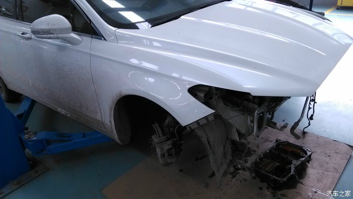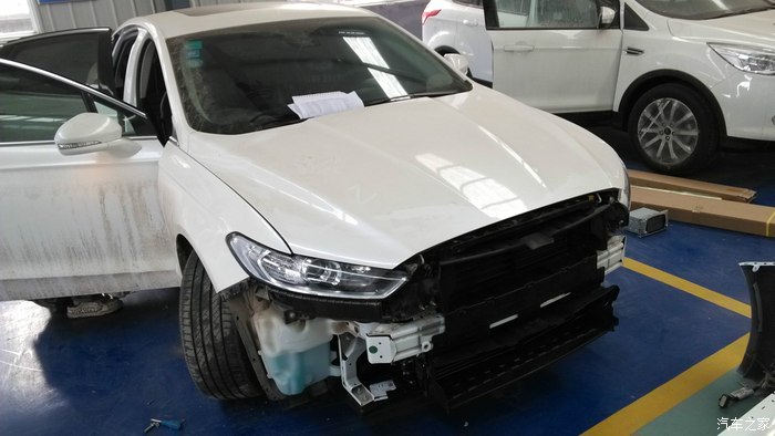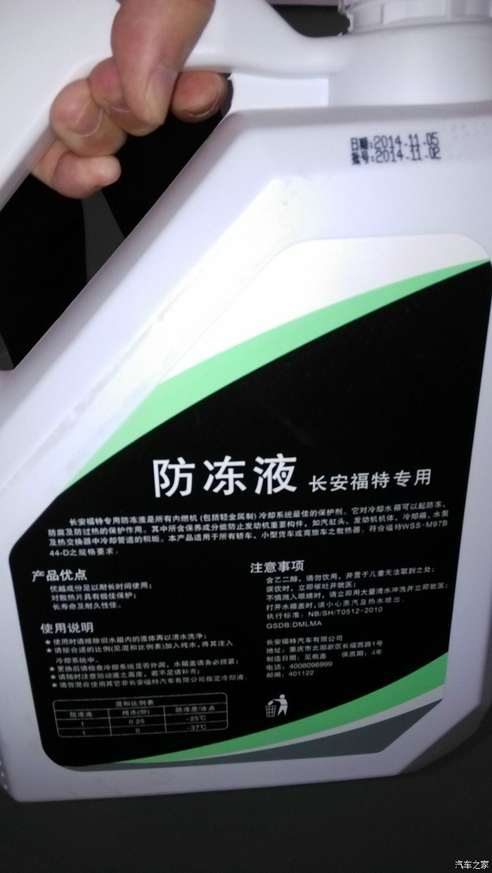 下面几张图是中间去4S店加防冻液时拍的,看坛子说福特一般要收费的,我当时说感觉漏了(因为当时确实也少了),下的很快,店里就说先添加点看看,直接说想添加防冻液恐怕该问我要钱了,防冻液包装和型号都有,以后也可以自己买了加,相比收费的肯定划算多了;另外几张图是在店里看的正在维修的新蒙,还有俩致胜我没拍,比下面的新蒙坏的还厉害,看的我都肉疼,新蒙是辆好车,可说回来无论什么车平时还是要遵章出行,车坏了可以修,命没了可就真没了。
