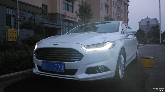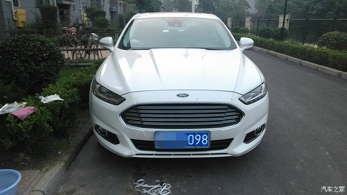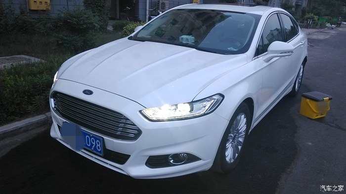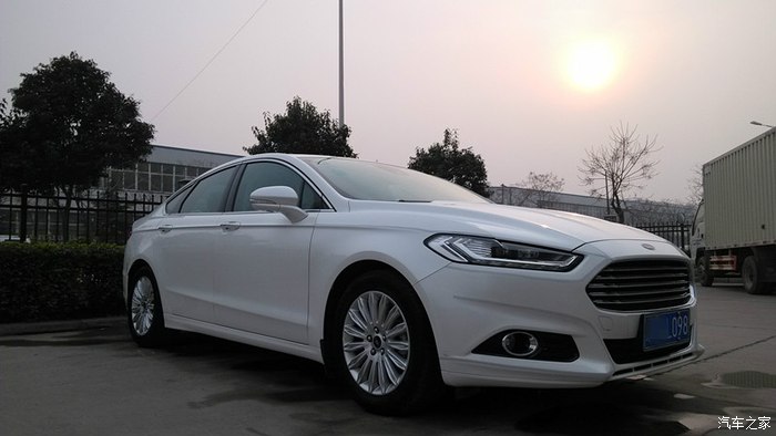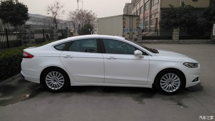 这个时候就说主角了,福特13款新蒙迪欧,这个是在别克店看完车之后,旁边是斯柯达,再往那边就是福特店,居然是老婆说福特有个新蒙迪欧,咱去看看吧。福特我是知道,不过那时候我知道最多的福特车是福克斯、致胜、翼博、翼虎、锐界、探险者、野马还有GT,看样子还是功课做的不到位啊,都不知道有新蒙了,对蒙迪欧还停留在致胜的影像,大学时候对致胜的印象就是威武霸气啊,老帅了,碉堡了,只不过现在看就相对一般了,所以并没有往福特这里想,翼虎那会断轴又闹的厉害。于是乎去店里看了,展厅门口摆着两台试驾(后来知道一辆旗舰,一辆乞丐,都弄的有拉花),展厅里一台珍珠白旗舰摆着,瞬间亮爆了有没有,很惊艳有没有,我跟老婆一下就看上了,于是询问价格,也要来了配置详单,当时我想1.5时尚就足够了,虽说家长同意增加预算,但我始终还是想挑实惠够用的就好了。动力上朋友们建议一步到位得了,上2.0时尚,初步是这么定了,问了之后是原价,珍珠白加选色费,全部车型没有现车。就留了联系方式,一是回家再看看新蒙的信息,再者看有没有熟人之类的,到时候价格上再优惠点。回家查了新蒙的信息是越看越喜欢,车辆的小问题都是在可接受范围的,而且也是个案,不能以那些小问题作为决定标准,断轴那些慢慢我就觉得没有一个是完全正常驾驶情况下就断了的,明眼人都看的出来。于是开始谈价格,本地不给任何优惠且无现车,期间也询问了周边地市的4S店,有一个地方有现车同意给优惠现金2K,除了珍珠白选色费外没有附加的东西,考虑到离得比较近,优惠2K也是可以跑一趟的,这就叫上家人准备周末一起去提车了,先顺路去本地店看了一下实车并试驾了一下,就是让家长感受一下这辆车,满意就直接去外地提了,结果到店发现有车了,价格还是不肯给优惠,后来联系人同意送一些车上的装饰什么的,根本不值钱,贴膜都不肯送。这时候因为有实车可看了,对比着看了下老婆又看不上2.0时尚了,觉得起码2.0豪华以上的好看,要说外观上实际也就大灯不一样,可老婆就觉得差别很大,LED大灯很有神,希望上到豪华,当场略一商量,那就上豪华吧,LED大灯这个还是很厚道的,多个导航,倒车影像也用的到,虽然导航是个坑货。。。同时联系的外地没有豪华款现车,就这样,不等了,半路截胡在本地店提了豪华了,而且这辆豪华还是别人预订又退订的,机缘巧合也算是赶上了。(后来有次去店里碰到一个同样豪华的车主聊了几句,他就是在我之后买的豪华,等车等了50多天,之前的一辆给我挑走了,心中暗自一爽。。。唉不是,庆幸,庆幸,早买早享受。)