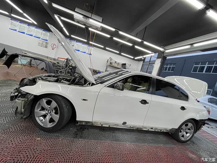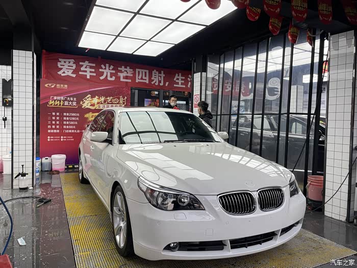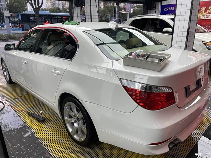 认识前车主恐怕有十年的时间了,认识的那时候他已经开始购入他人生中的第二台BMW,但是这台他的第一台BMW E60确依然保留,十年后,前车主购入了他第三台车,我也有了机会拥有这台E60,这是一台2007年出厂的华晨宝马525Li 豪华型,带后排娱乐系统,雪山白的外观油漆配合米色的内饰皮革,堪称宝马E系底盘车型的经典配色。我很喜欢这台车,即使现在已经是G底盘的时代,并且车机、环保等各方面都已经跟不上时代的步伐,但这些都并不妨碍我对它的热情,我们不谈情怀,但是经典的东西总是会让很多人着迷,喜欢的过程本身就很愉悦,这就是乐趣所在。接下来会有整备的过程,全车油水、易损件都进行了更换,包括避震器、暖风水阀、节温器等看不到的配件,由于机械部分没有拍照 ,所以这次主要分享一下外观整备的过程。