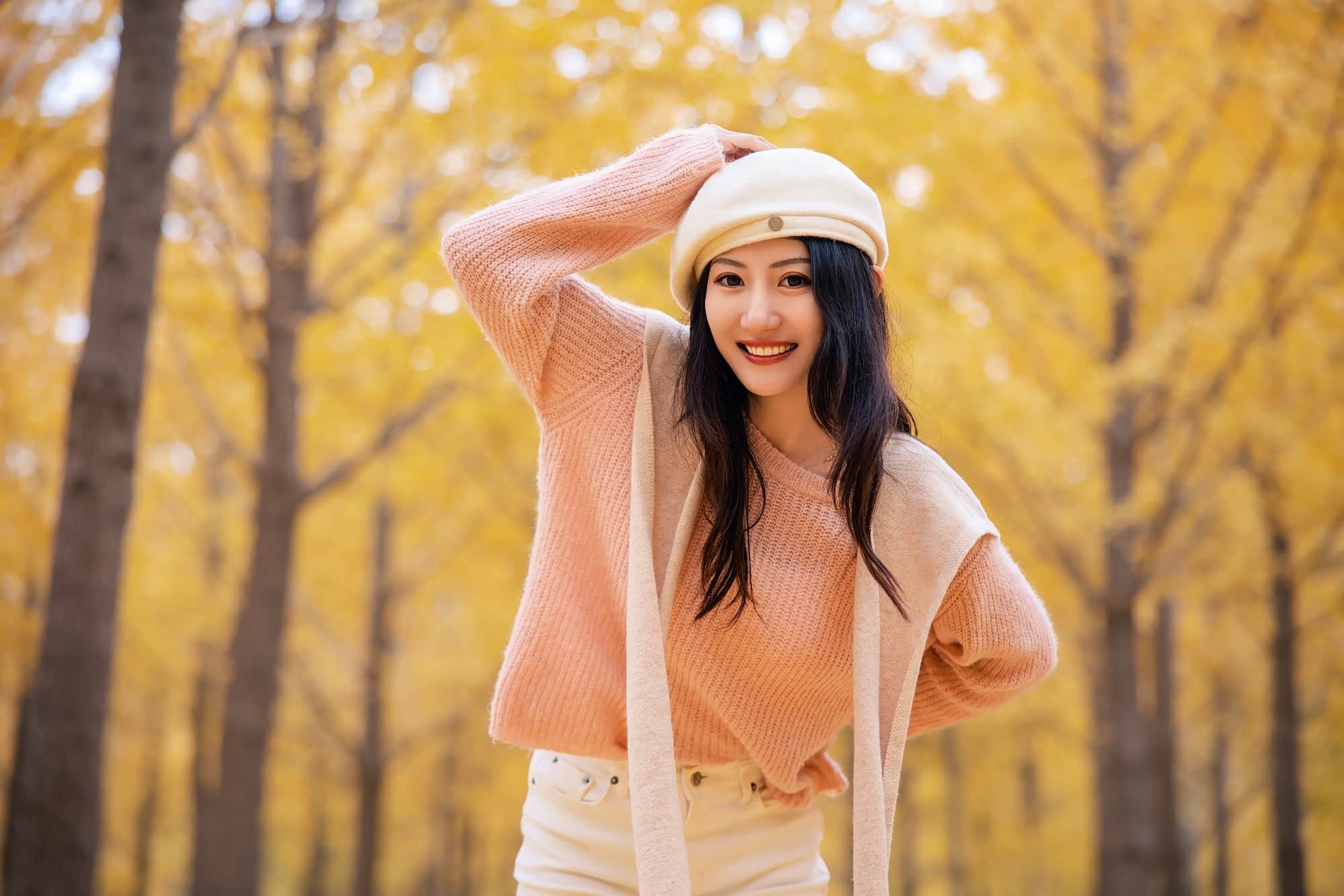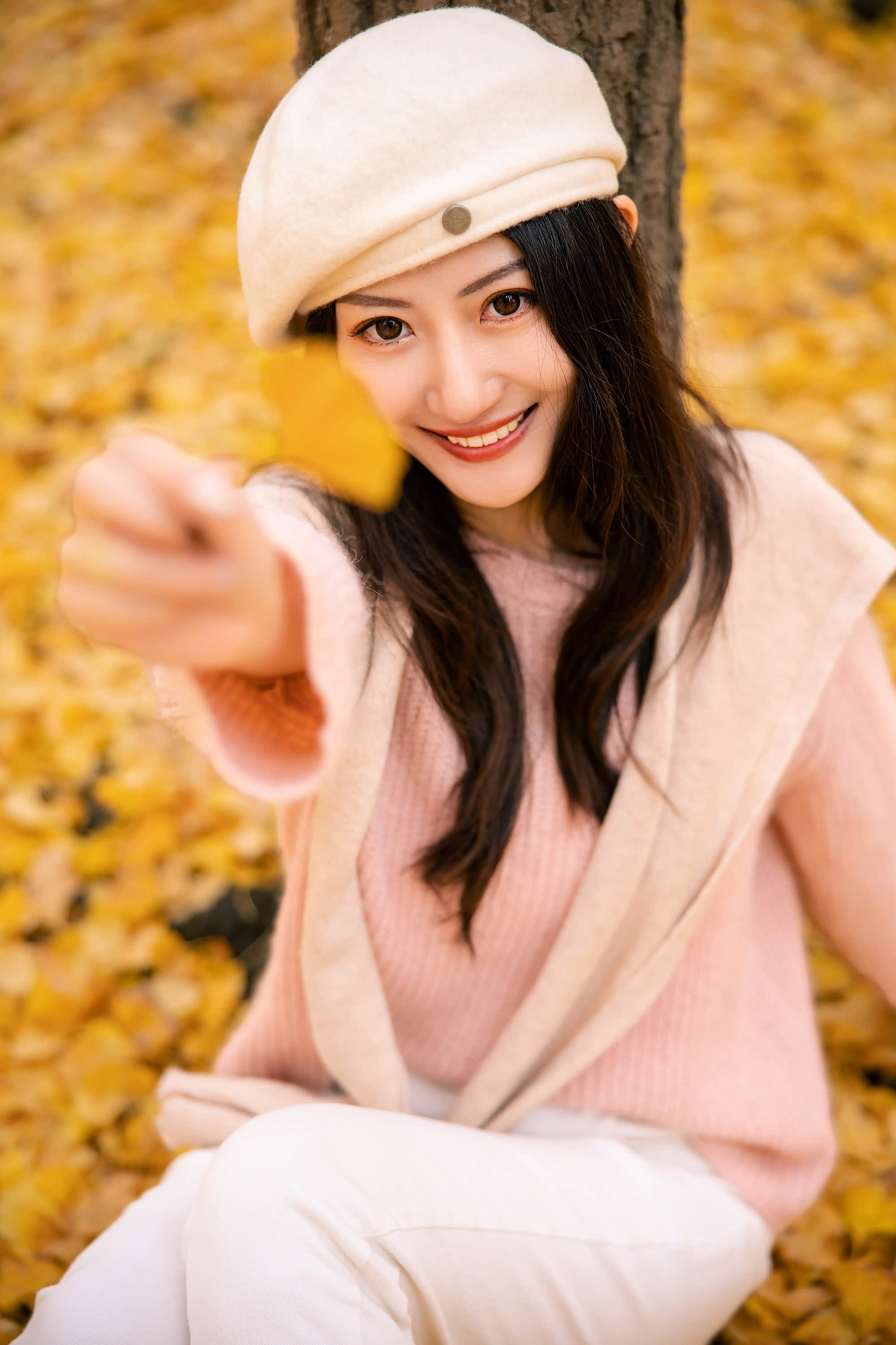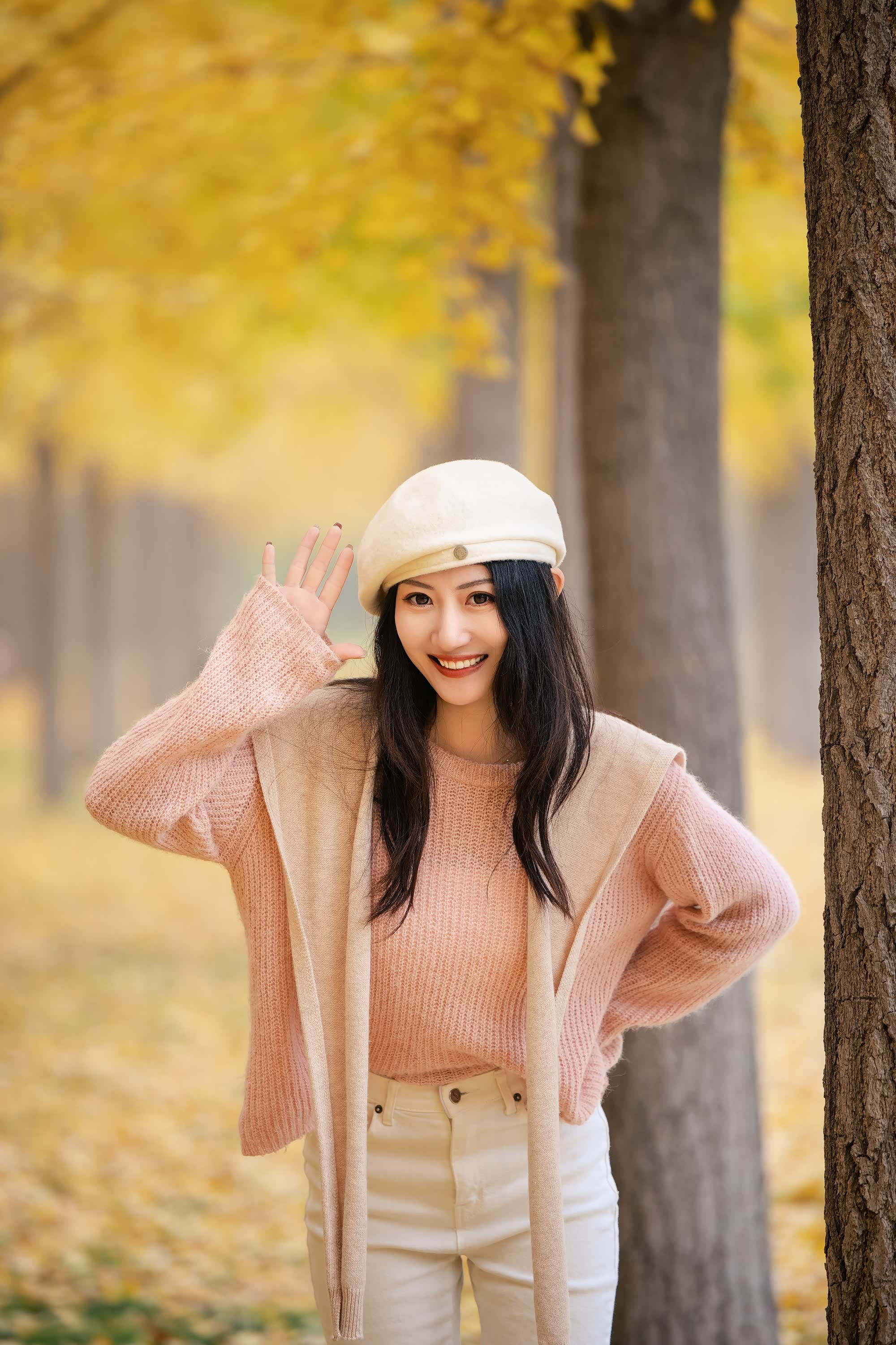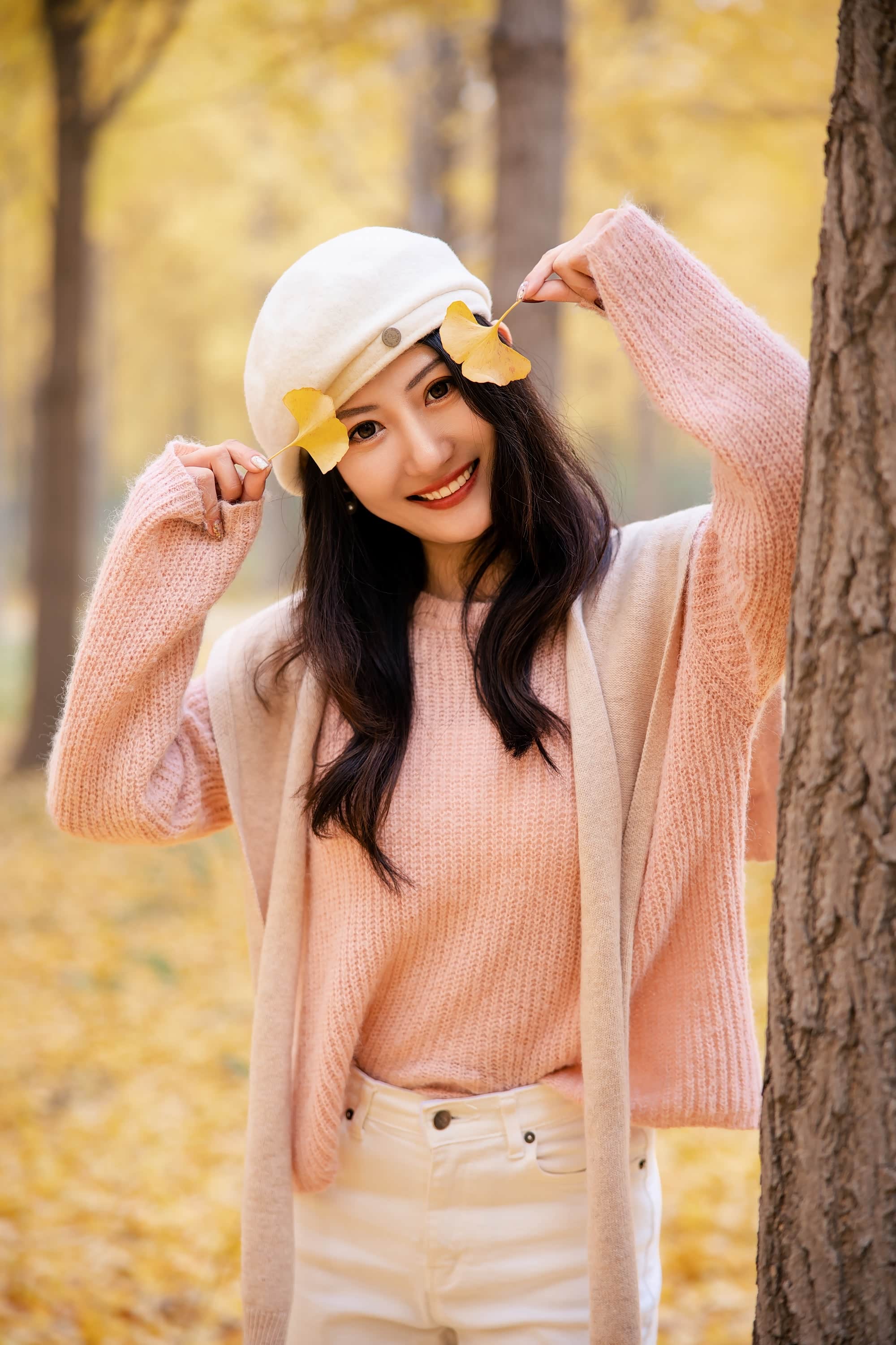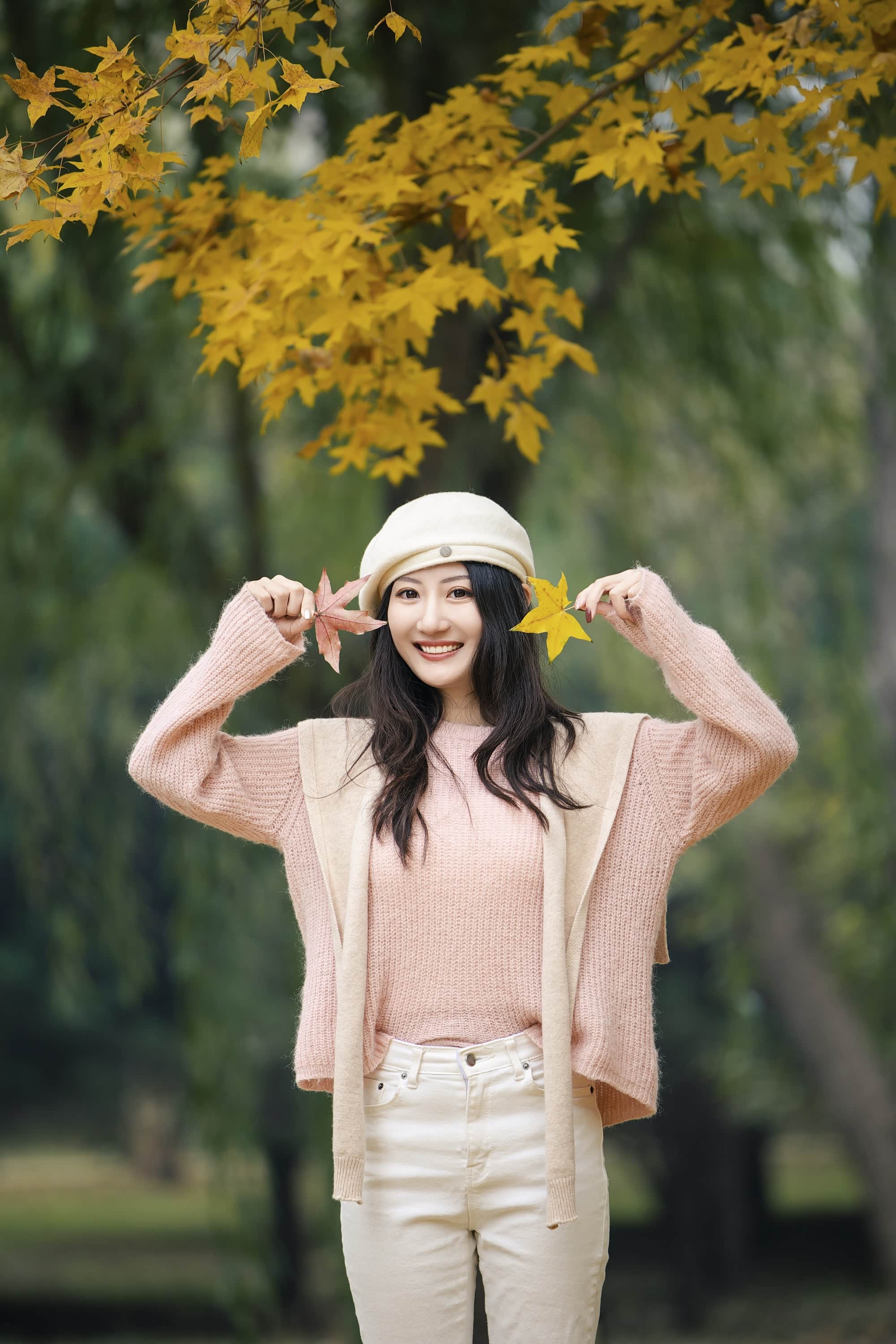 这时候来拍照,真的太合适了。光线特别柔和,小姐姐随便站在哪儿,背景都是一大片浓郁的金色,特别梦幻。拍照姿势也不用愁,自然地走一走;或者弯腰捡起一片漂亮的叶子对着镜头笑笑;再不然就靠在树干上或者坐在厚厚的落叶上,怎么拍都好看。
