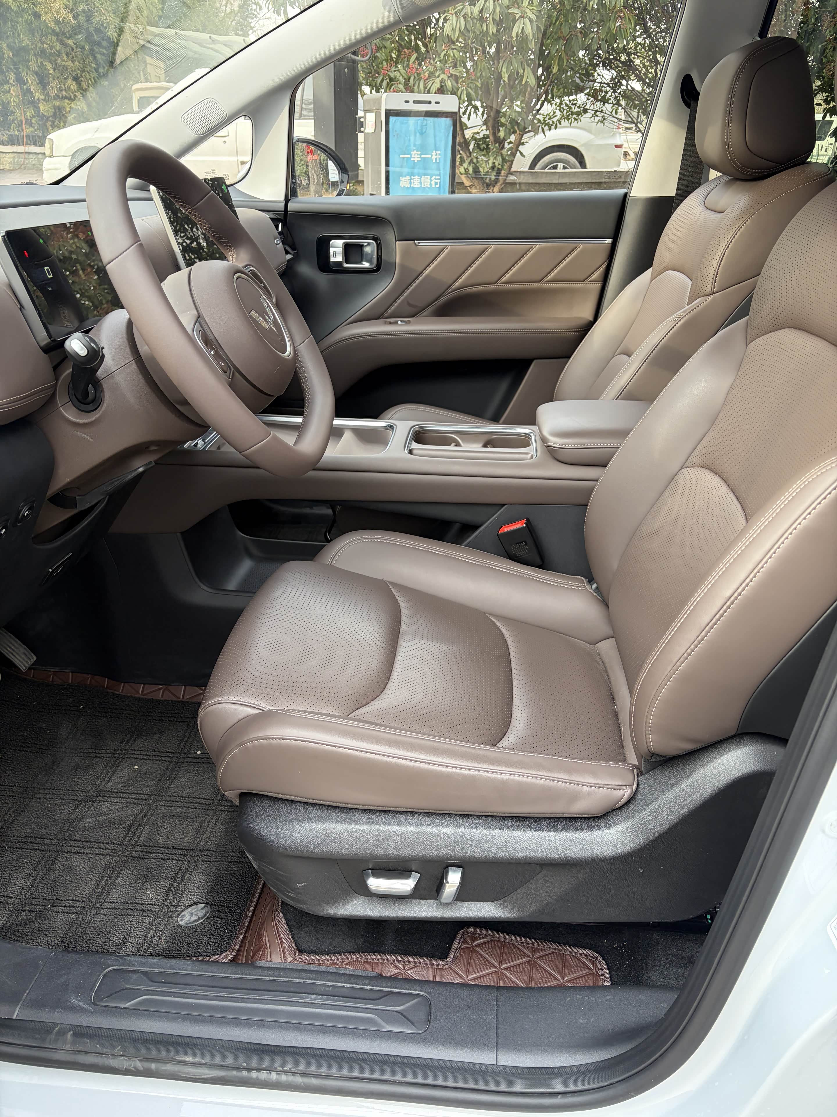 去店里试驾,第一感觉是“坐得高,看得远”,视野好。电车起步确实轻快安静,方向盘转向力度适中,开起来不像在开一辆大车。底盘过滤小颠簸挺舒服,过沟坎坎比我的老油车稳当多了。销售特意演示了二排空间,我1米8坐进去,腿部还能有两拳多,三排也不是摆设,应急坐人没问题。