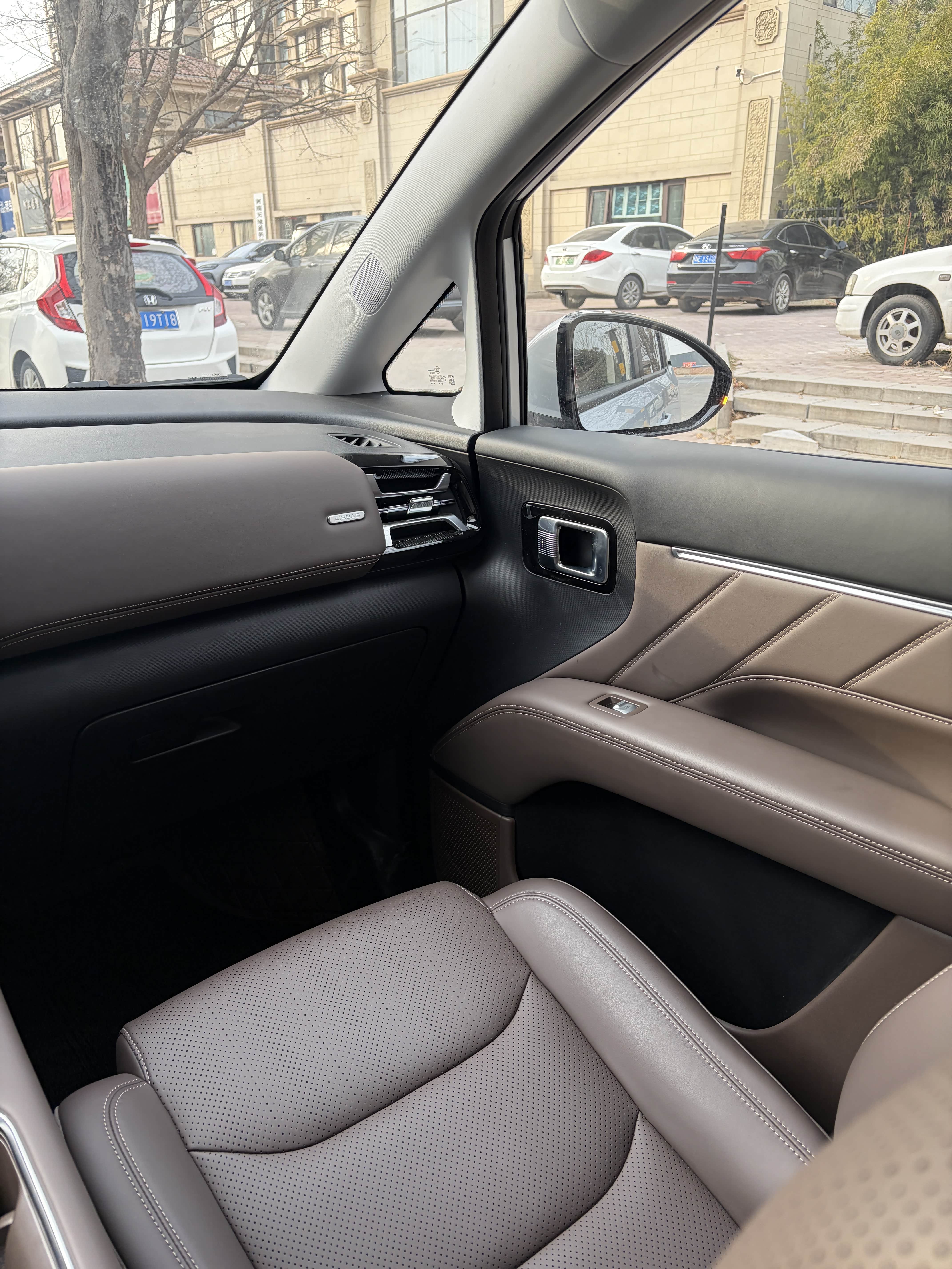 银霜白,大气,不显脏。内饰是综色的,简洁,用料对得起价格。中控屏反应速度可以,导航、听歌都方便。电动侧滑门是点睛之笔,每次用都感觉这3000块没白花。