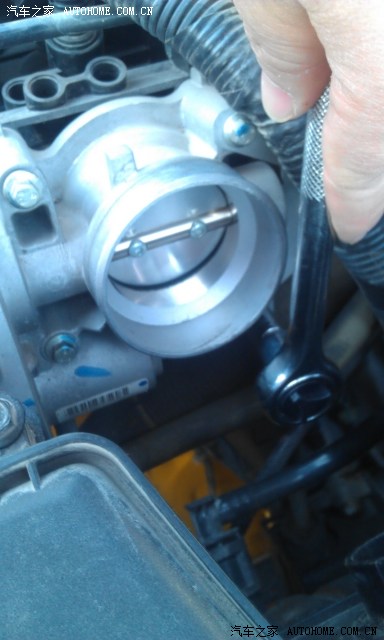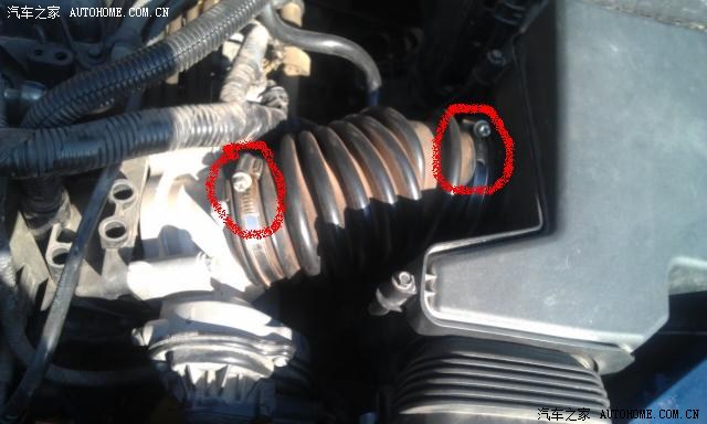 需要拧开两个螺丝 不用松到底 适度即可。拧松掉后,直接拔下来 用点劲就下来了 没什么技巧,如果非要技巧,就是先拔下一头。。。呵呵。拿下皮管后 就看见传说中的节气门了。福克斯的软肋啊。。