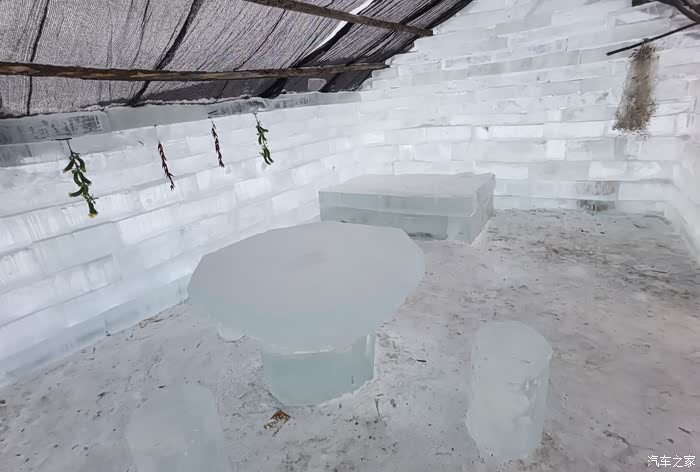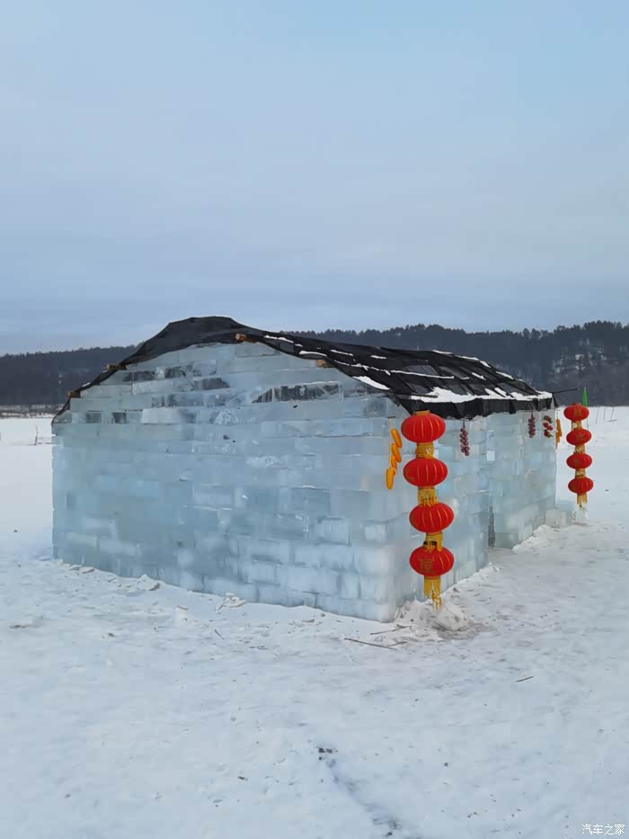 在界河上搭起了两间的冰屋,四面墙壁都是厚厚的冰块,屋顶是几根木头做成的横梁,上面盖上黑色纱布,屋外挂着最北冰屋的灯笼。