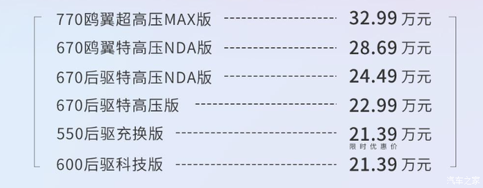 总结:对比了HT的6款配置之后,如果预算足够的朋友可以一步到位选择顶配,它配备5C闪充电池包和城市NDA都算是行业内的领先配置,而且还有非常炫酷的欧翼门。如果在30万内可以考虑670KM巡航鸥翼特高压NDA,跑高速多的话可以稍微加点钱选择670KM巡航后驱特高压NDA版。