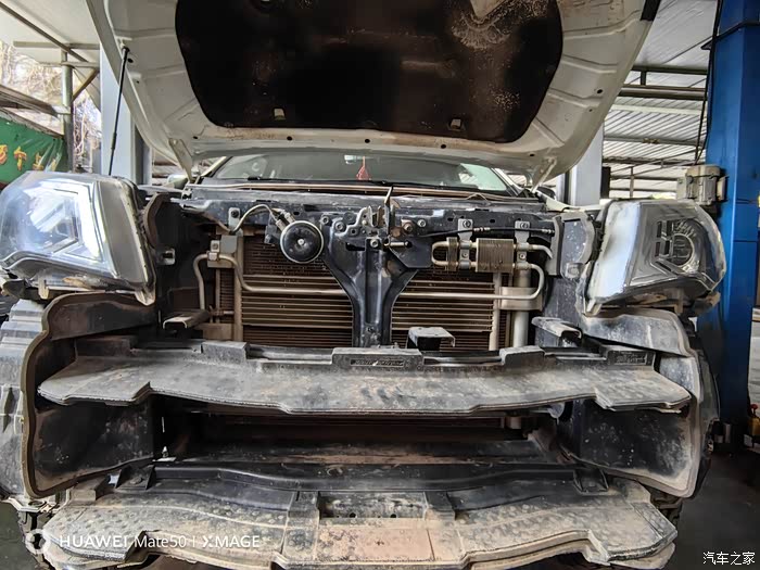 拆开后,前面空荡荡的,完全可以加一个绞盘。