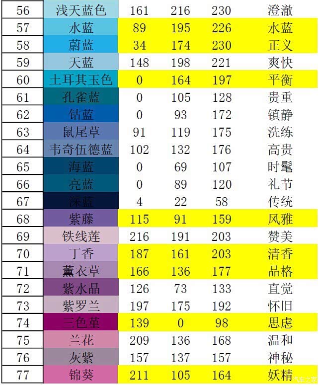 然后下拉菜单找带环境灯列表的,共30个,分别r头10个,g头10个,和b头10个,对比rgb颜色表填上自己的颜色,