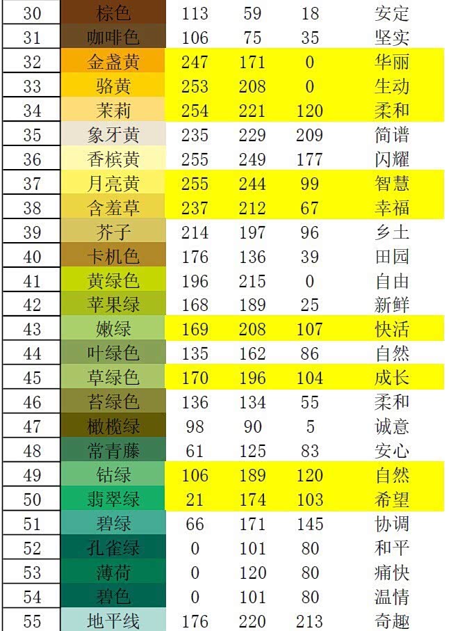 [VO]_Ambience_lightning_color_list_2列表(剩余20组颜色)
