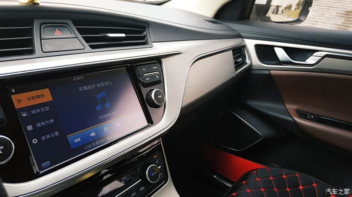 车内设计也适合年轻人的口味,内饰方面简洁大气,做工也算用心之作了,差不多看到摸得的到方都软软仿皮材料做的,摸上去比较舒服,中控台中间供桥出风口也独特,中控表面大部分用金属拉丝铝组合,这样组合起来使整个中控看上去更高档大气了。