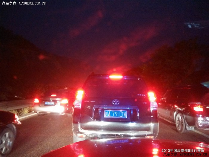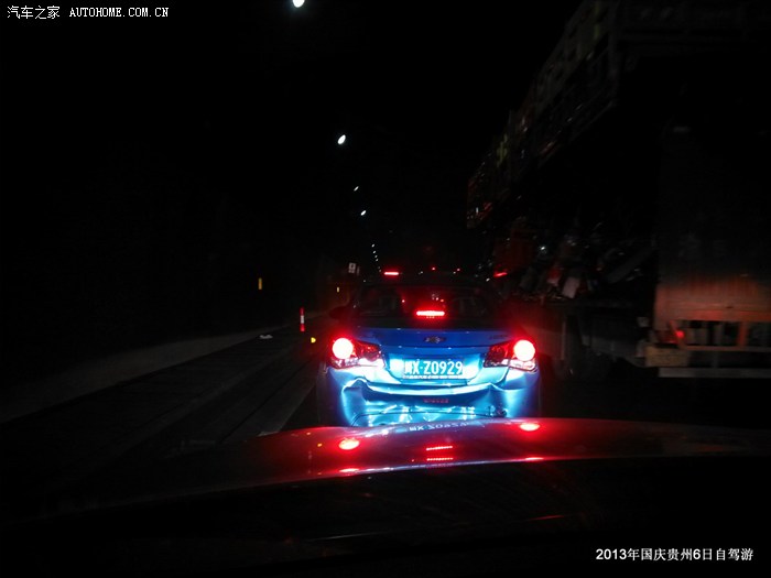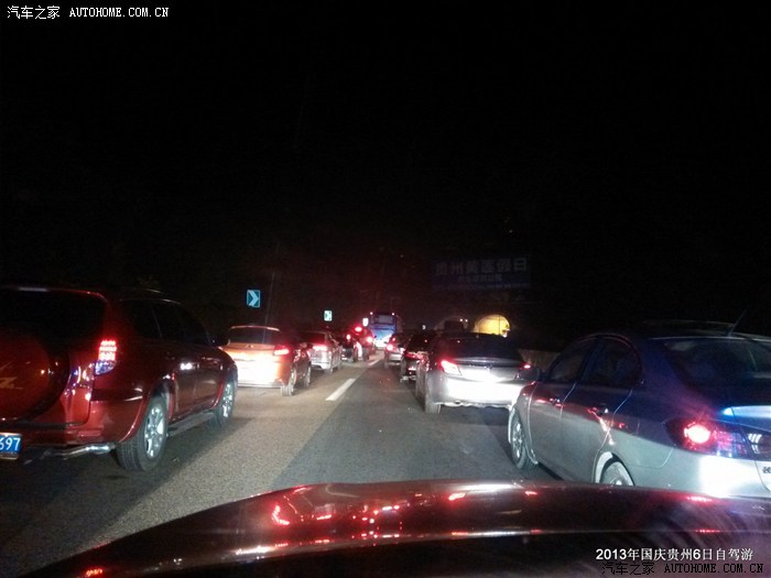 这次堵车,超过半小时,再次通行时,天已经黑下来,心里想着前方是不是出了什么车祸,但实际并不是,在我们快到安稳镇的时候,也就是贵州收费站入口的位置,几辆大货车占据了一条车道,加油站加油排队的车辆全排到了高速路上,几个交警围成一圈聊天,好像完全处于无奈而任由游客堵塞的心态,真的不知如何评价