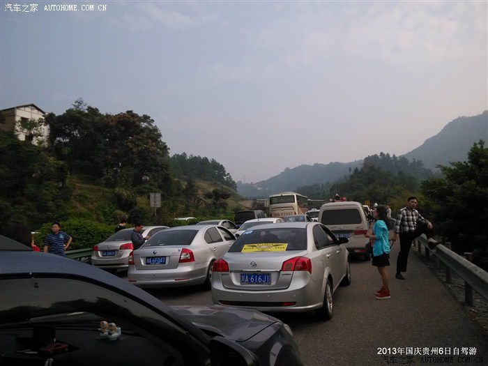 但心里始终担心的塞车来临,出了重庆驶往遵义,行驶十几分钟,车速放慢,开始塞车,看着高速路上川A占据大半车流,觉得队伍庞大的同时,也着急这次行程必然异常拥堵。。第一次堵车,人都下车休息观望,