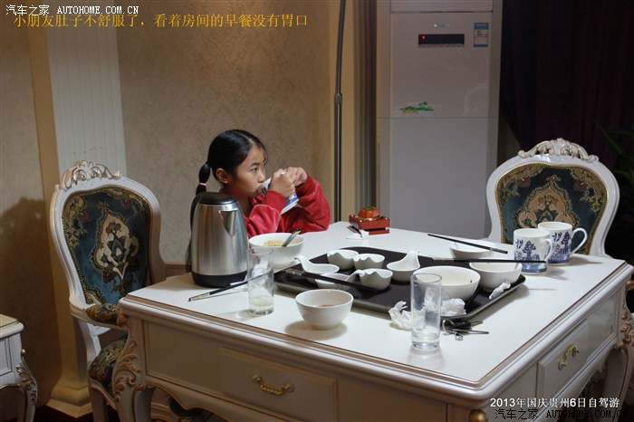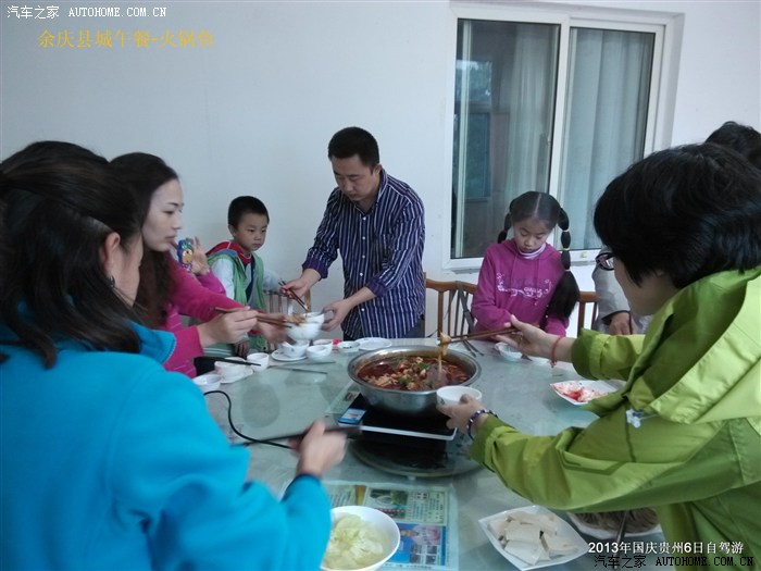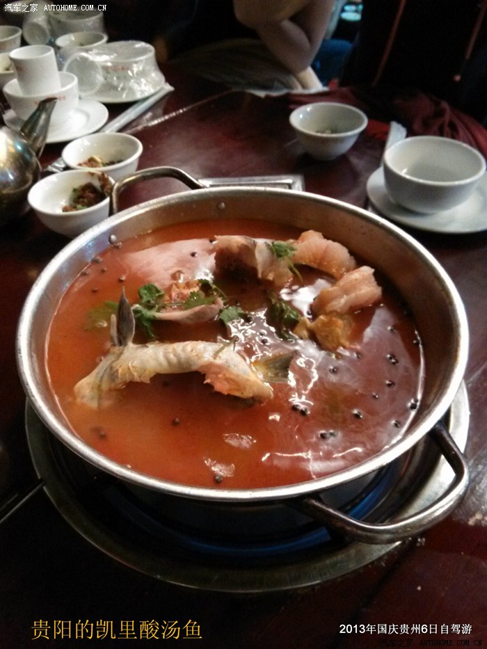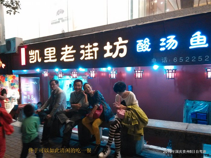 10月2日早上6点,广场上打扫卫生的、卖早点的陆续上场,我们只好揉着咪栖的眼睛,卷起帐篷出发了。再次驶入高速,一切死梦魇而过,经过40分钟车程,我们到达遵义,找了点吃早餐。顺便电话联系遵义的两辆车沟通今日行程。大家商量的结果是:如果今天赶往黄果树,路途需要3小时,而且带着疲乏的身体,还有一群小孩子,感觉不是很恰当。于是临时决定取消去荔波的行程,而调整为2号下午在贵阳休息溜达,第二天一早赶往黄果树瀑布景区。当晚找了家凯里酸汤鱼,开始预热了一下渴望品味的胃。