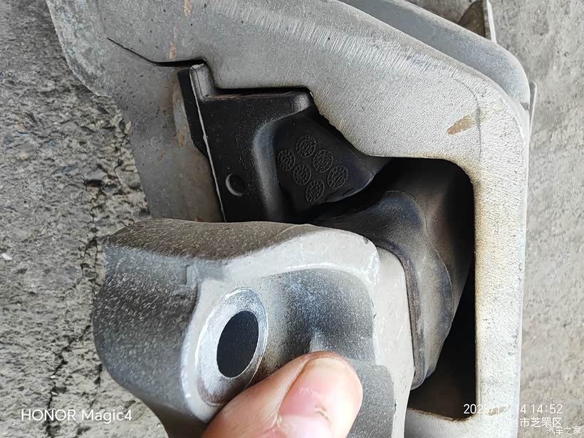 21年七月买车到现在,已经开了差不多四年半了,行程17万多公里了,从今年秋天开始感觉车子震动厉害,发动机声音似乎也变大了,去检查说发动机机脚垫可能需要更换了,于是定了配件,今天去做了更换。旧的机脚垫真的不行了,里面的胶垫都撕裂了,失去了减震能力,难怪震动大,声音也大了。