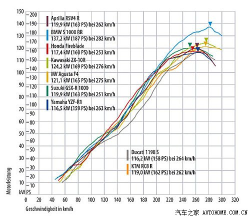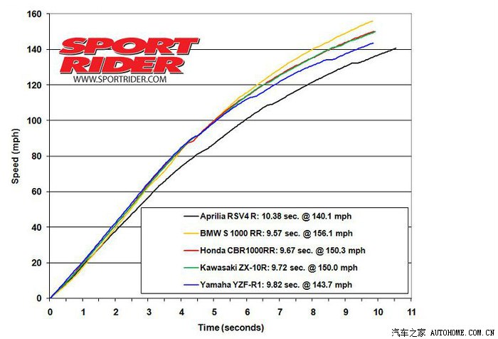 宝马S1000RR加速极速没得说,大幅领先对手。