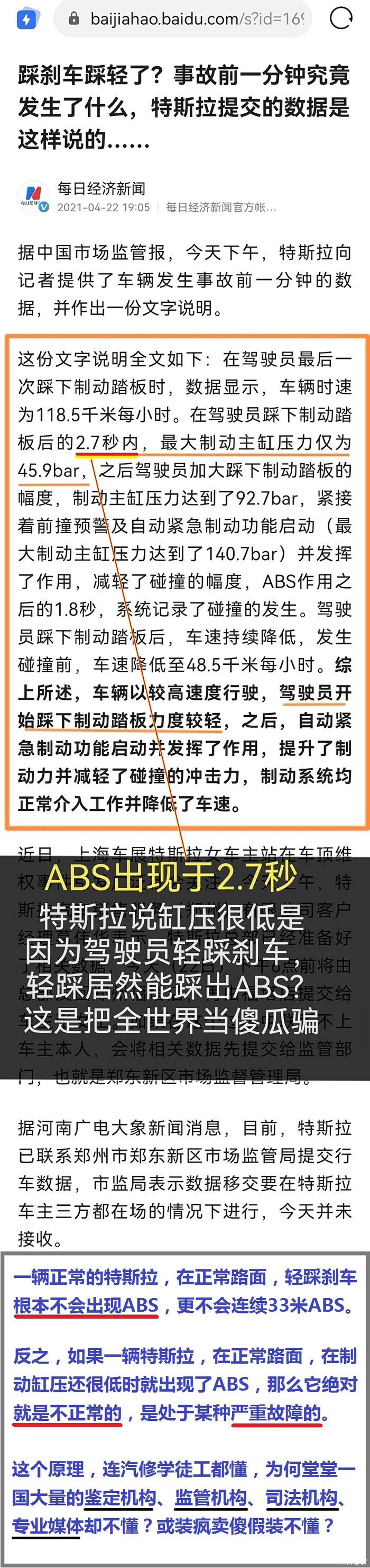3.参考下面第3张第4张图,然后上街随便找一个修车师傅问问——在干燥平坦的路面,一辆正常的汽车,轻踩刹车是否能踩出ABS?是否能够连续33米踩出ABS ?