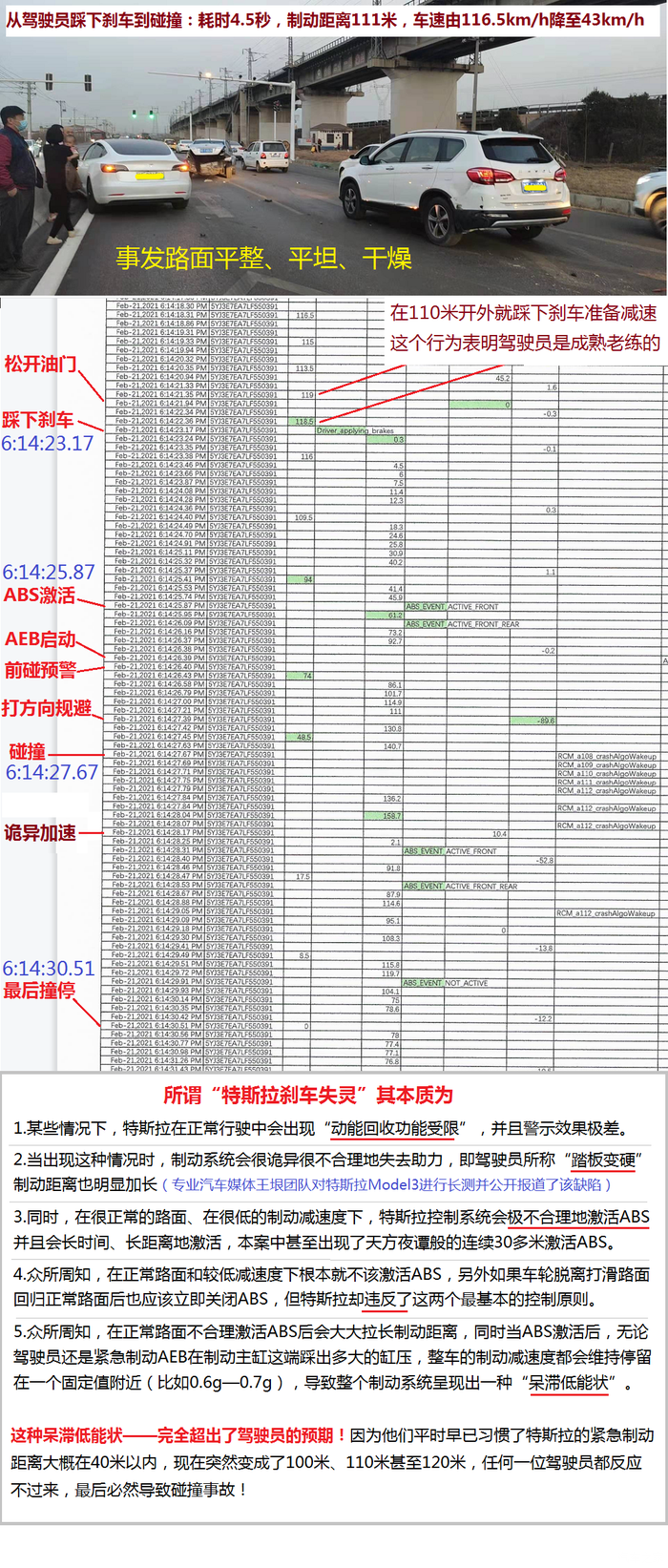 所谓“特斯拉刹车失灵”是指——驾驶员已经踩下了刹车(没有踩错踏板),行车数据也记录确实踩下了刹车,但刹车距离却很长,远远超过正常车辆的刹车距离。