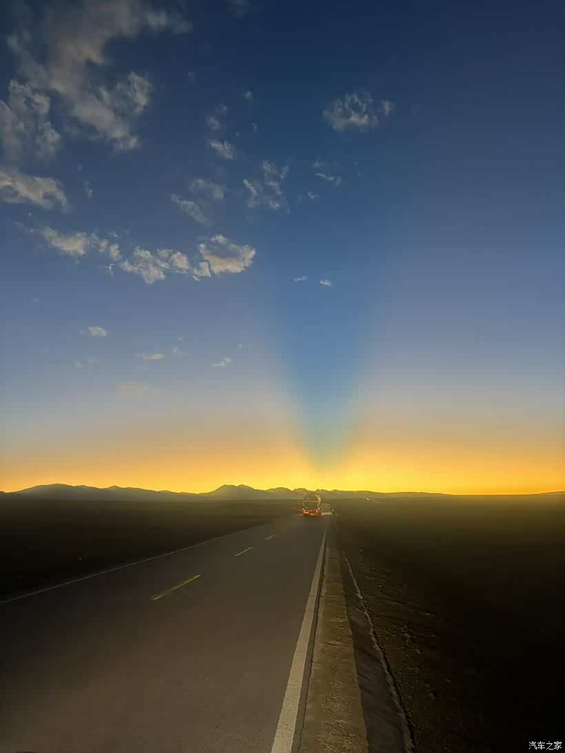 进入阿里地区拍的天边落日后的一片蓝光,这个是什么造成的,不清楚