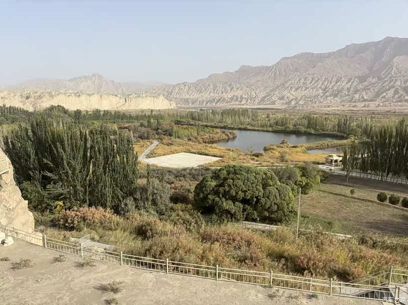 石窟正面的绿洲与河流,石窟其实不准确,因为都是沙土,练铁砂掌个个都是高手,敦煌莫高窟还是完整点