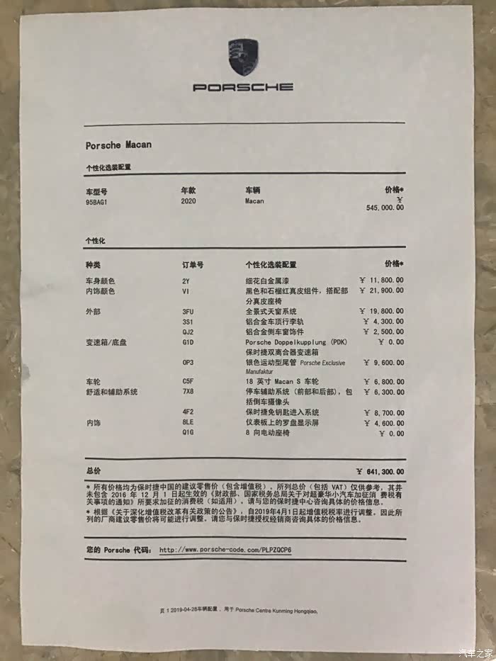 ................................................................................转折,在朋友店里喝茶,朋友开的14款macan,觉得还不错,外观内饰也漂亮,媳妇看了也觉得可以。定下了就这个车了,昆明两家4s店都去了几次了,各种讨价还价,定了。这里告知一下想买车的朋友,这个车买现车和按自己的要求选配定做是完全两种价格,如果不缺钱的朋友就定做吧,一般是4S有配额是四到六个月,优惠小。现车优惠巨大想了解价格的可以私信我。一定要和销售顾问谈,管理允许的话各位可以留言我会回复价格,希望对各位朋友有帮助。本来我想定做的,奈何价格走差太大,买了一台和自己想要的配置差不多的现车。一会儿附上自己的选配单。................................................................................个人经验建议有几项必选,第一真皮内饰必选,不选真皮内饰座椅的材质是仿皮和翻毛皮混搭不好看也不舒服,翻毛皮时间长了吸汗沾手,而且仪表台是搪塑材质,没错,和奥迪一样是塑料的,极其掉档次。选了真皮内饰就有真皮仪表台,内饰上一个档次,而且是Nappa的材料,细腻柔软,看着舒服。开车每天都是对着内饰,内饰材质不好真的影响心情,个人认为真皮内饰非常重要。................................................................................第二金属漆必选,不要普通漆,原因就不细说,各位都懂,而且普通漆只有黑白。尤其是白色一定要选金属漆,不选普通漆时间长了必然会泛黄。................................................................................第三全景天窗必选,不选的话这个车是没有天窗的,注意直接没有天窗,没有天窗真的很LOW,又不是碳纤维车顶。................................................................................第四保时捷免钥匙进入必选,没有这个真的很烦,走到车面前要找钥匙出来按一下解锁开门,进入室内要插钥匙扭,下车又要掏钥匙锁车。有这个选配就方便很多,钥匙在身上握住门把手开门,室内直接扭转启动键点火方便。................................................................................第五前后雷达和倒车影像必选,或者直接选配全景影像也可以。没有这个对于开车技术相对较差的人停车是大麻烦,而且吐槽一下,倒车雷达经常犯神经质,莫名其妙报警很吵,倒车影像更是不堪入目,而且画面还是扭曲的。副产的倒车影像都没有这么差劲。其他的选配我觉得看个人了。这五个是最最重要,个人觉得。................................................................................