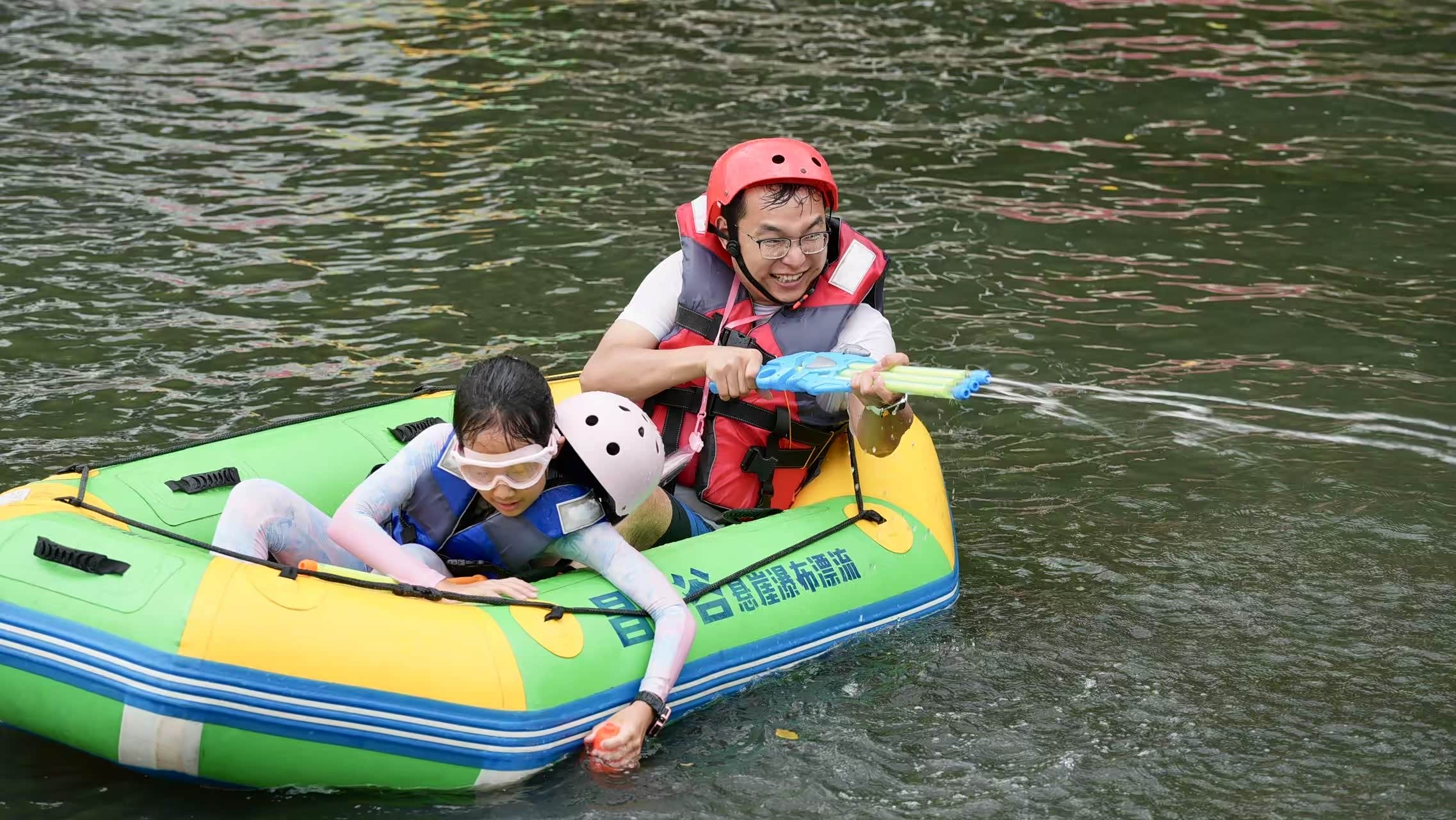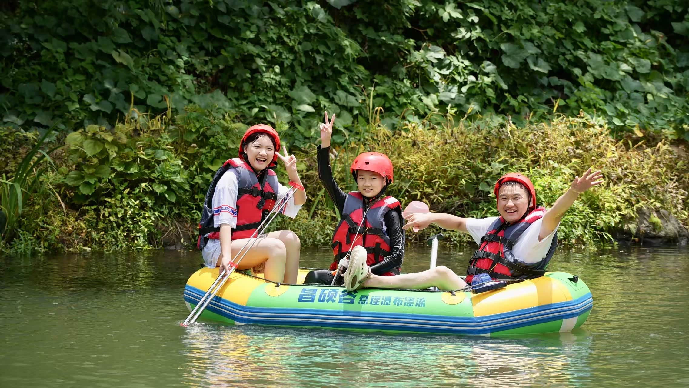 然后就是重头戏!漂流正式来临啦!昌硕谷的悬崖瀑布,从百米绝壁纵身跃下,我们套上红色救生衣,像一串跳跳糖被倒进皮筏,刚离岸就被水流拎起——第一落差直接给我灵魂做CT🙂?️尖叫声撞在石壁又弹回耳膜,皮筏化身水上过山车,浪花劈头盖脸砸来,手机防水袋里的镜头全是世界末日的雪花屏😝水滴顺着脖颈滑进脊背,激得全队车友集体蹦迪。冲出洞口,直接进去群体泼水环节🫨🫨🫨那真的是一个刺激好玩👍