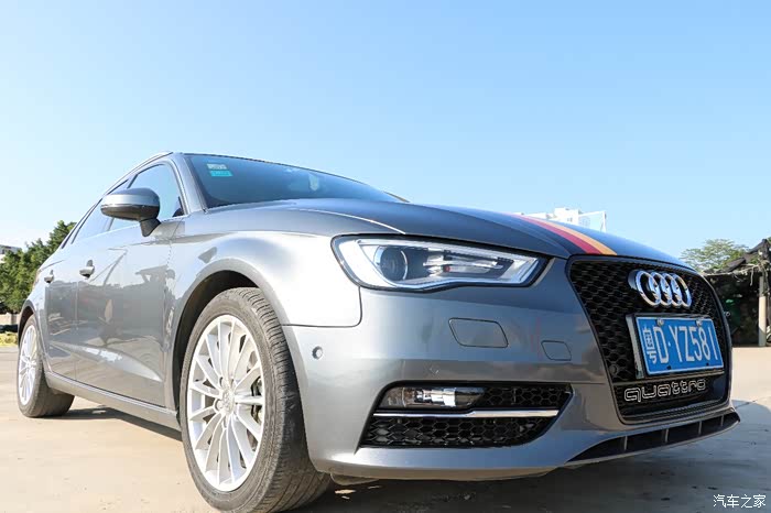 车子的照片就差不多拍完喽!说车吧!A3从上市到至今改款的发布!心病一直就是7速的干式双离合变速箱!你们仔细去观察!往往喷这个变速箱的都是没开过A3的人!就是一看是干式的,感觉自己懂很多一样,一言不合就开喷!其实你开过!你就会知道这款干式的双离合变速箱并没有他们说的那么夸张!换挡顿挫到不能忍受的地步!当然并不是说这个款变速箱没问题!问题有,车友群里也有车友更换过离合器总成的!空调压缩机异响的。毕竟双离合的技术缺陷在!我的变速箱也有问题啊!热车起步的时候就会咕咕叫啊!但声音很小,得关音乐才听得见!刚开始很闹心,后来习惯了也就无所谓了!反正上车必开音乐!还有变速箱问题和车主使用环境和习惯有很大关系!我的变速箱一直小心翼翼保护啊!遇到堵车要么切手动档,要么切S档!不要让它频繁换挡就好啦!毕竟车无完车,就像人一样,谁能保证从生下来到老去,不生病?不去医院? 只是次数罢了!至于去医院次数的多少就看你怎么照顾它咯!至少我的小三儿从买回来至今,还没有把我丢路上过!轮胎倒是补了好几次了!扎钉情况在所难免嘛!其他问题就没啦!至于改装!专业的就会发现没改什么真正提升性能的东西!像轮毂,刹车 进气 之类的!原因很简单!因为我是纯外观党(qiong)啊!哈哈哈哈!话说新款A3出来了,外观又提升了一个档次!不过我家小三现在也不差啊!哈哈哈哈!