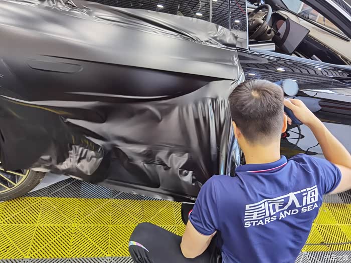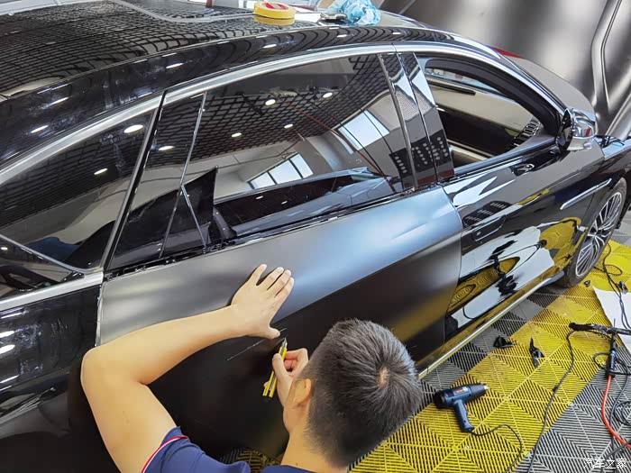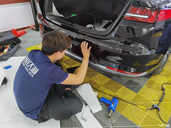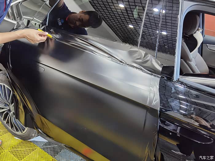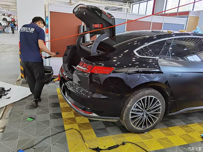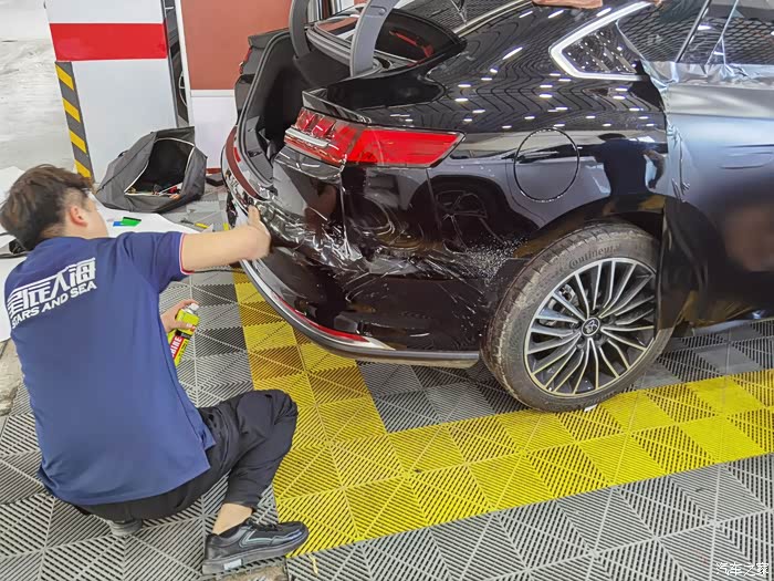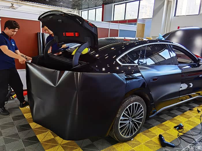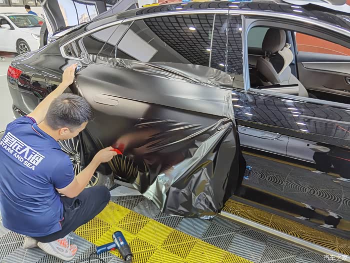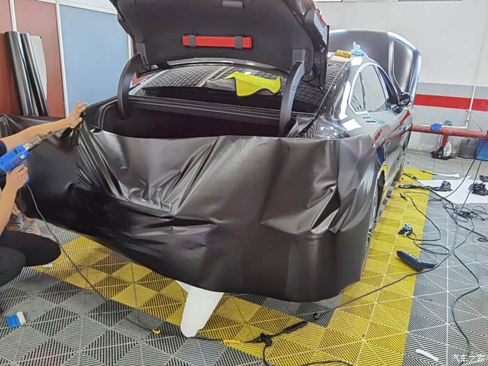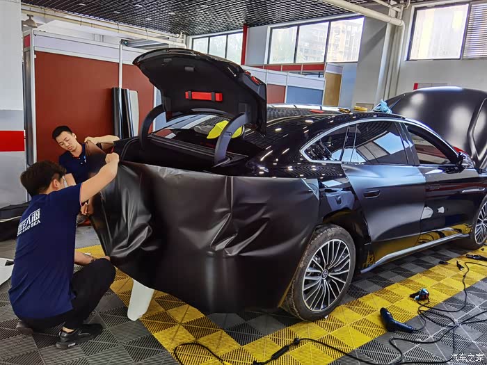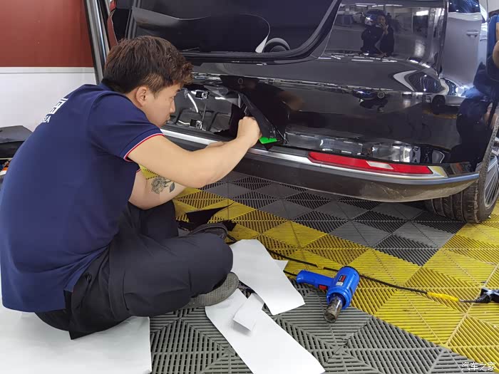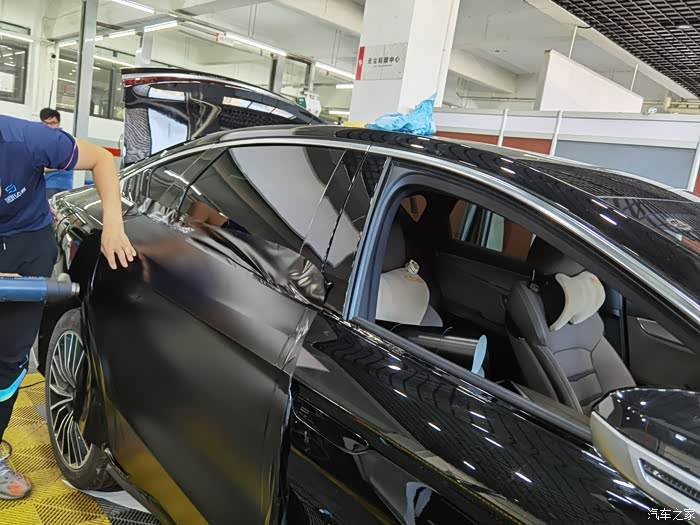 原本以为贴个膜就像手机一样简单,计划差不多两三个小时就可以了,没想到两三个小时过去了才只完工了一个车门加尾巴,说是至少要两天才能完工,唉…看来今天是开不走了,不过看局部效果应该不错,期待成品了,隐约有种黑武士的感觉,如果灯组熏黑、轮毂熏黑、、、哈哈哈,看来大汉要在我基础改装的路上陪我越走越远了!