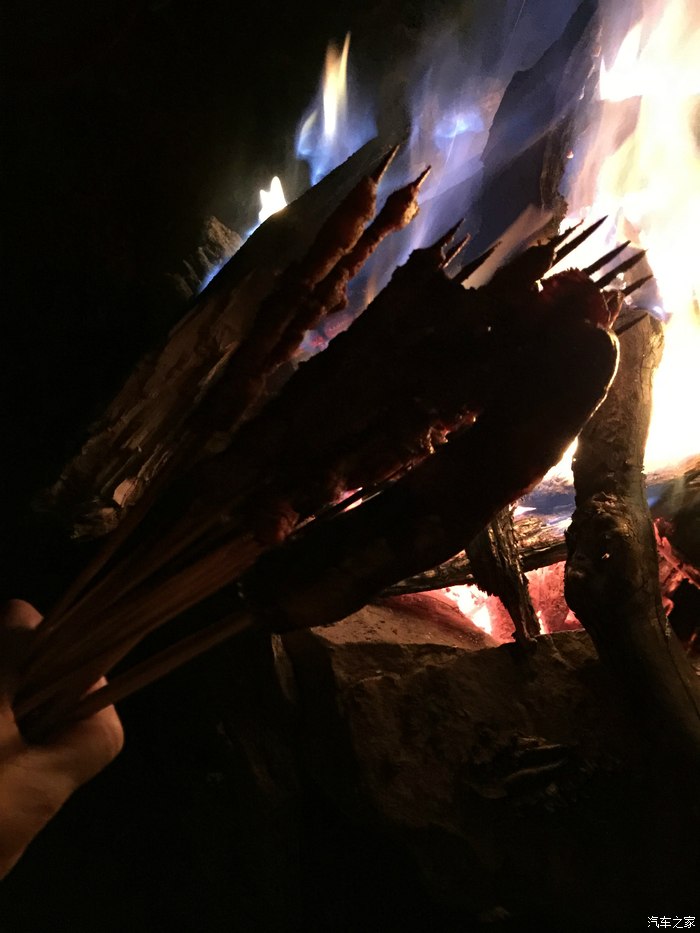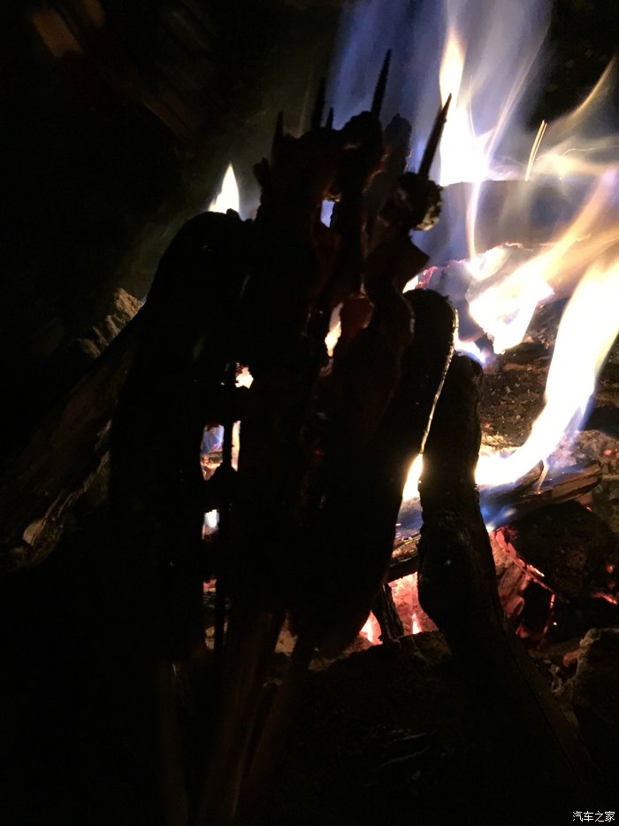 晚上把火升起,这是大帐篷人给的烧烤,谢了。很好,就是没预计能开上来就没买这些东西就只带了干粮。