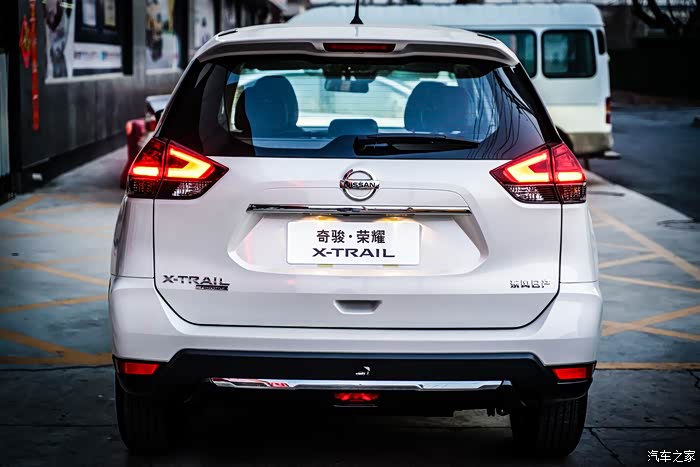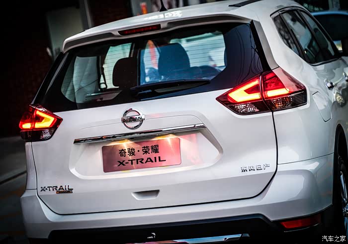 奇骏·荣耀车尾部分,新车拥有一个小型的车顶扰流板,