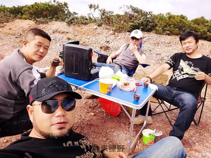 不到一个小时,就到第一个山顶平台,今天出门晚,就准备在这里午餐,喝茶。