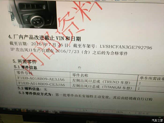 ……上论坛一查看到有车友发出来的福特文件,我的车刚好踩着不合格批次的尾巴,果然买到正品福特