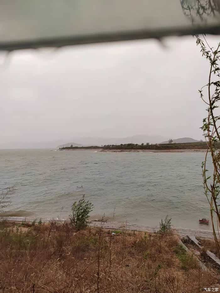 本来想风中垂钓,但是风吹的根本无法抛杆,大浪一个接一个 ,漫过钓台,只好回车里躲雨,右下角是我的钓台