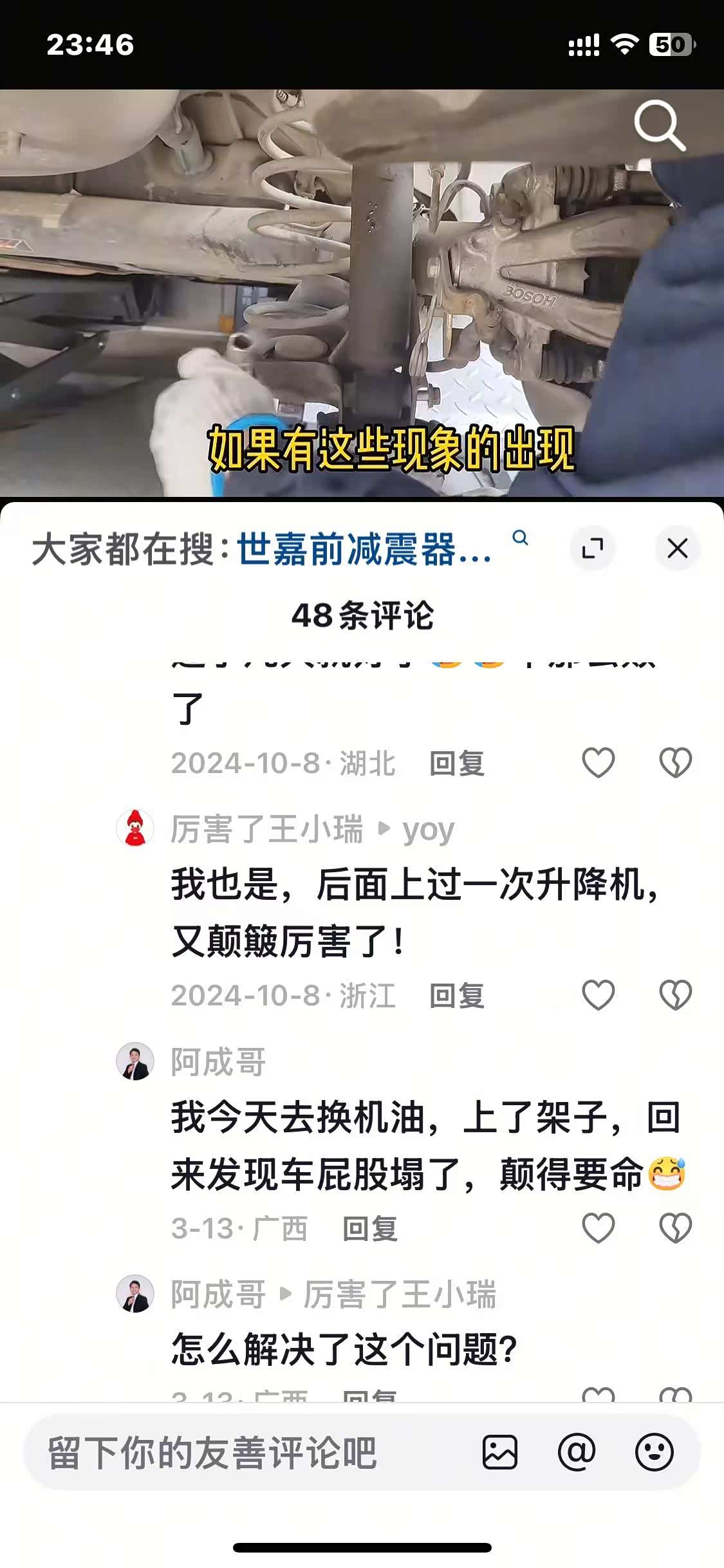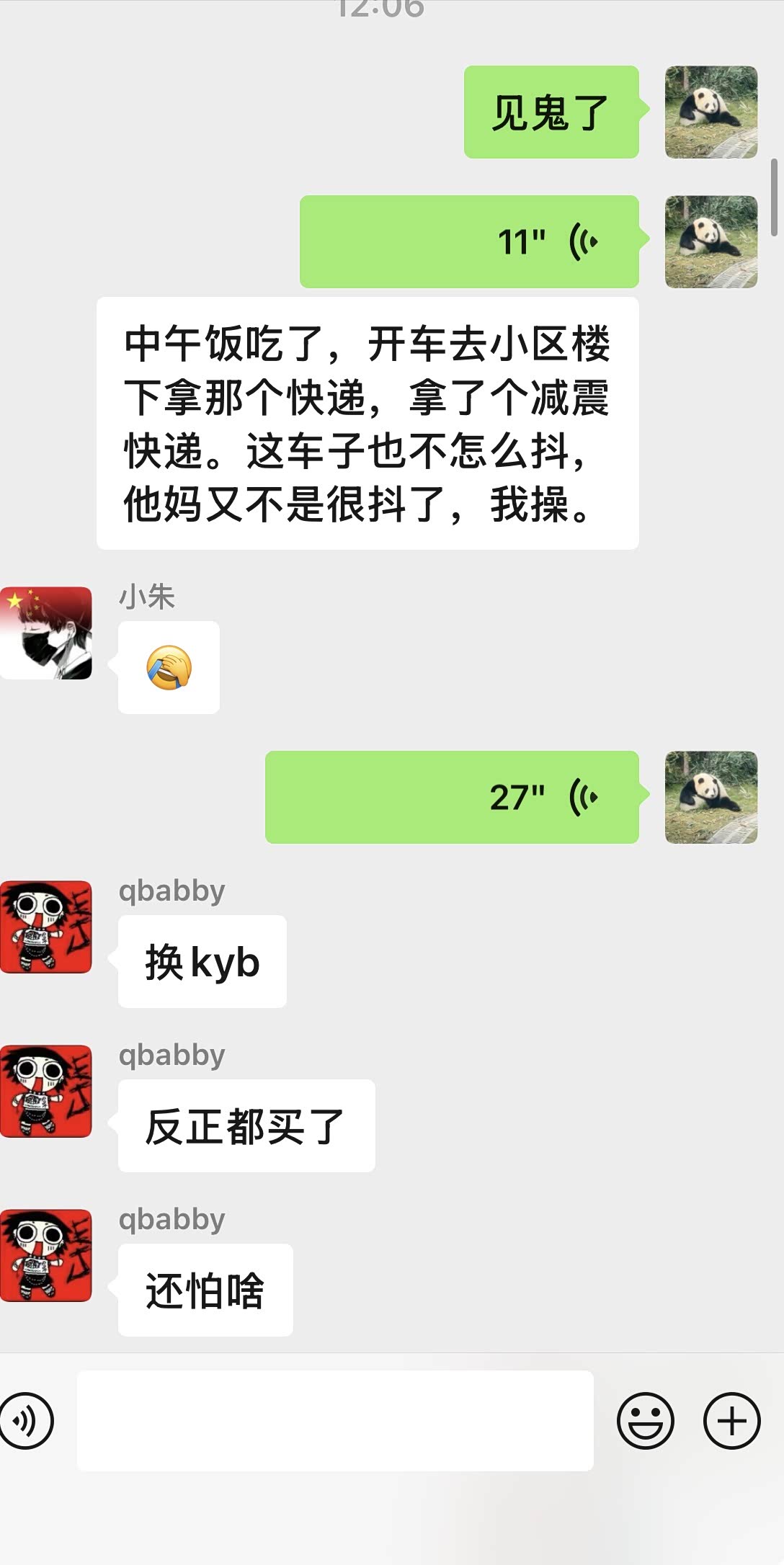 第二天发现开起来还是特别颠,我就怀疑是不是应力没有释放,群友怀疑是不是轮胎不行,为了验证我就中午去某虎问问,他们两个人试车之前也怀疑我轮胎不行了,结果试了一圈回来说是减震坏了,, 我都怀疑判断失误了,毕竟我开了几万公里的爱丽舍,后阻尼器失效的状态我太熟悉不过了,,回来继续上班,刷论坛,看抖音,问vts