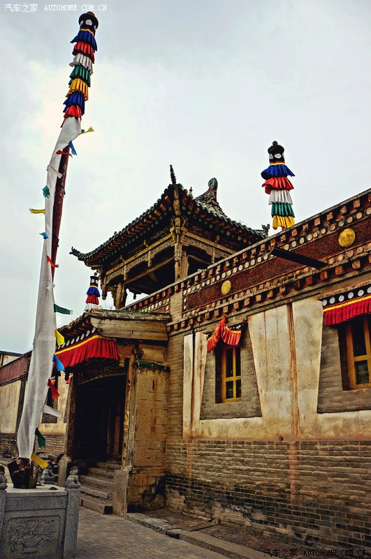 草原上牧民的房子,还有五彩的经幡