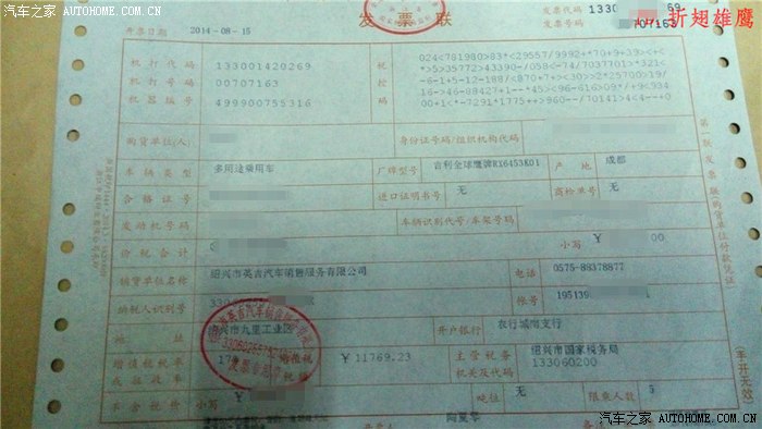 【选车】看着身边的朋友和熟人都拥有自己的坐驾,心里也有一点小羡慕,于是去年8月就去培训驾照了·12月就拿到证,也算是顺利,自从有了证心里就有了买车的冲动,于是根据自身的能力,频繁在汽车之家观望了几款国产车,也选了几款自己比较中意的,第一是众泰T600,那车外观真的挺好看的·咱无米之人也不管山寨不山寨了·于是用心在关注着,看见很多人提车后·问题逐渐慢慢多了起来,心里也就冷了一半,还是放弃了,后来又关注了S6,那车性价比是比较高的·配置也挺好!后来带LP看了下实车,LP说S6屁股很难看,再是朋友买了一辆,说综合耗油要9角,我LP就更不要了,最后我这附近有两个人买了GX7,这车初看真心不怎么好看,但是看了一段时间是越看越耐看,(特别是14款后尾立柱灯)于是就关注之家GX7论坛,也逐渐了解了这款车的细节,我最注重的是这车的安全性,底盘扎实,动力够用,外加7个气囊,4S的售后服务(听朋友说售后不错),所以心里就决定下来了,绍兴4S看了个遍,最终选择一家服务态度和优惠力度都是我预期的把车定了!