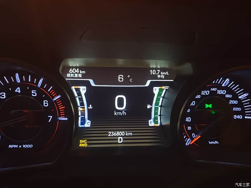 我不知道怎么能调到百公里油耗。不过,我可以算出来,一升油跑10.7公里,算出来百公里油耗就是9.35升(100/10.7)。
