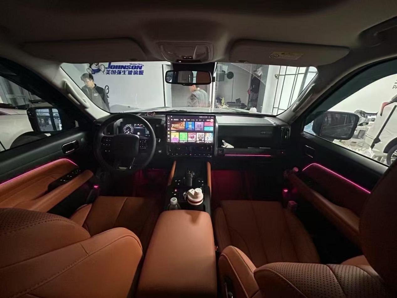 经过4个多小时的煎熬,终于看到了我期待已久的内饰氛围灯,在打开的那一瞬间,我觉得这4个小时真的没白等,真的是帅极了。不光门上有,前面后面脚下面也有,而且我开车喜欢听音乐,还有音律功能,真的是太帅了。我朋友和我一起来的,也一直夸这个氛围灯真的是太好看了,我觉得非常值!最后我们心满意足的开车回去了~