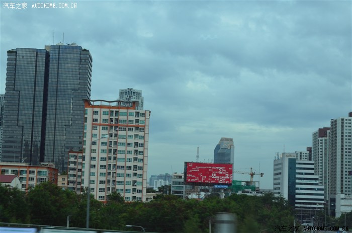 在旅游大巴上隔着玻璃拍摄曼谷市