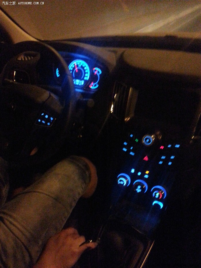 晚上的中控效果图,照的有些虚了,见谅!蓝光还是很漂亮的!