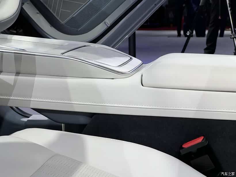 所以看完外观,大家也十分好奇内饰是怎么样,我也迫不及待的想进去体验一番。首先第一眼,车内配色,极简风格内饰配色,官方说还有极地银装、子夜星尘、脉冲光能,这些看上去比较高级的感觉。现场的是白色,这个白色有点像埃安LX Plus的真皮,以及车顶的翻毛皮包裹,不过这个座椅造型要帅很多。还有小小的仪表,应该显示的东西并不多,类似特斯拉的Model 3吧。