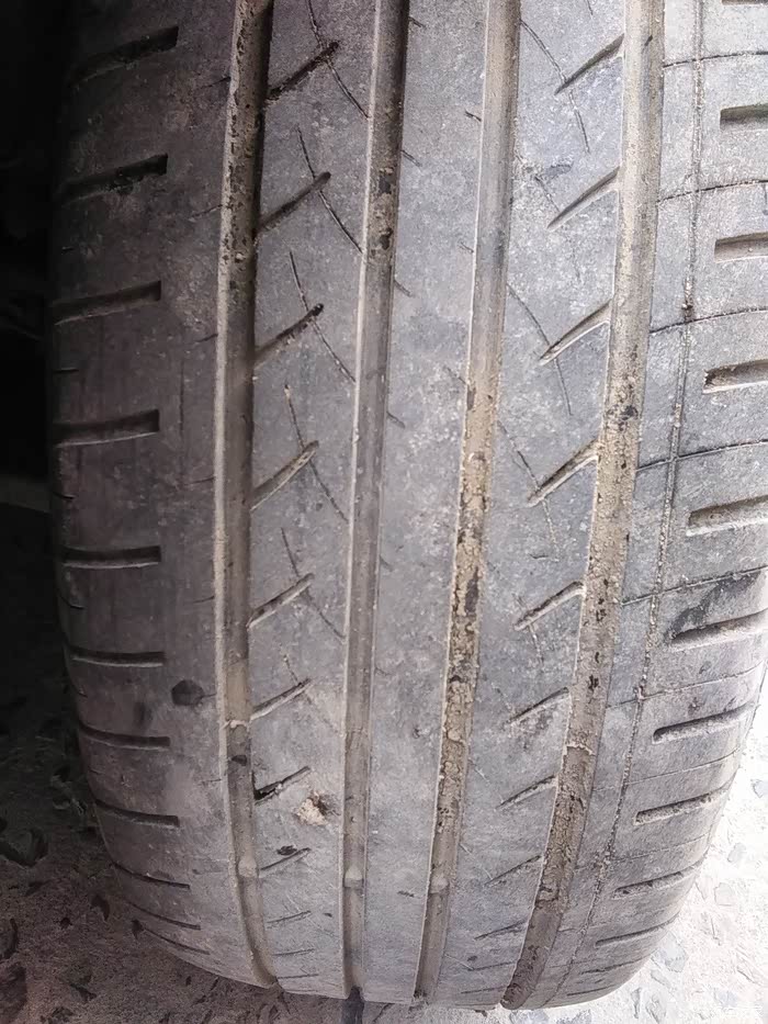 我的。八千多公里,前轮内侧偏磨,细纹都没有了。群里面一个上海的换了减震器,估计是减震器变形的原因,如果定位没作用的话。这是我的左前轮。