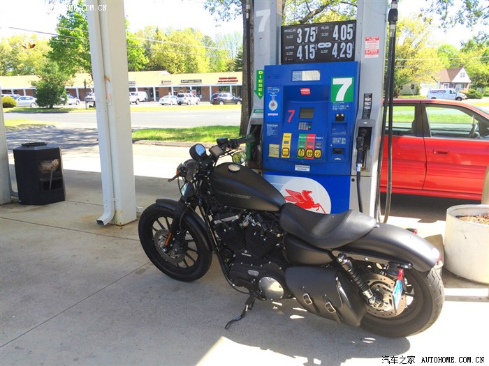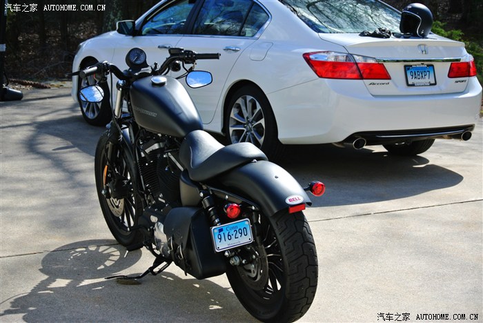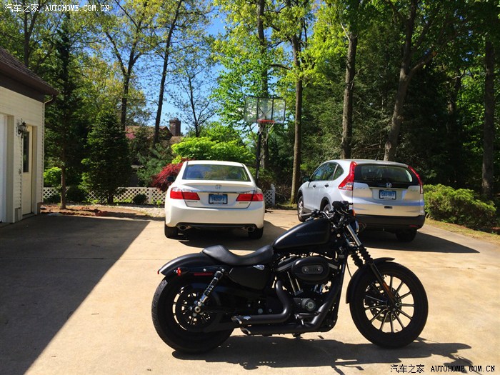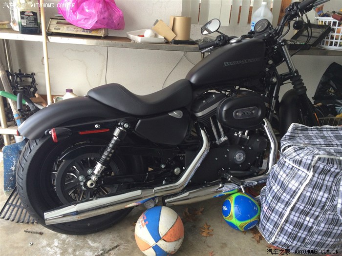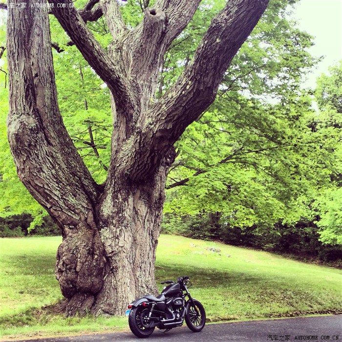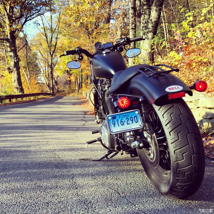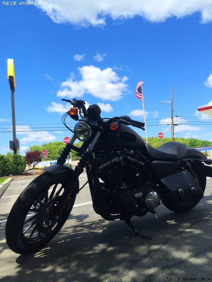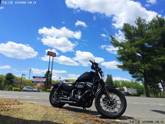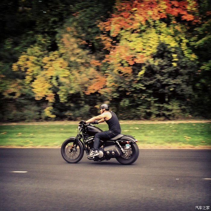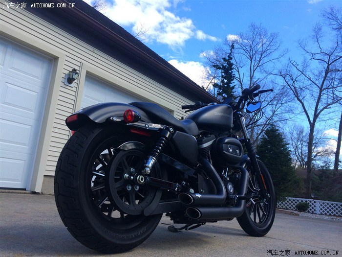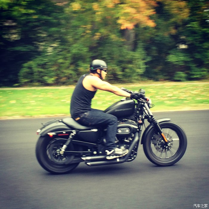 883 侧面饱满,哈雷家族里唯一一台像街车风格的巡航车,就是正面看太窄了,硬伤