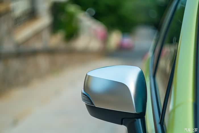外后视镜并没有选择跟车身一样的绿色而是采用了银色,也算是一个点睛之笔,也是为了迎合年轻人而设计的,上面还整合了转向灯。
