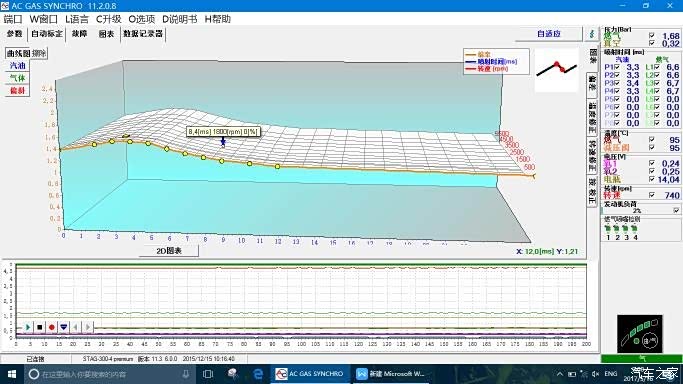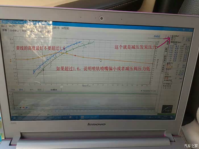 如果有定速巡航更方便,一点点的加速度,一个速度跑上几百米,连续这样操作几次,电脑上就会绘制出一条燃油曲线,这个调气的基本参数,非常重要。也可以打开空调,在空调的不同档位,分别跑如上的操作。燃油曲线是蓝色